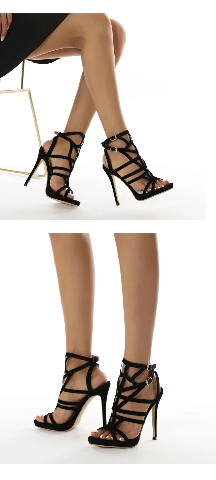 Hollow Personalized High-heeled Sandals The Latest 2022 European and American Style Simple PU Rubber Summer Shoes Women