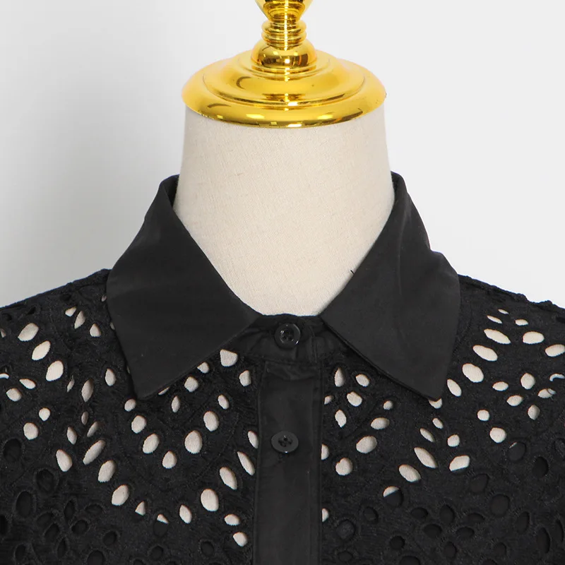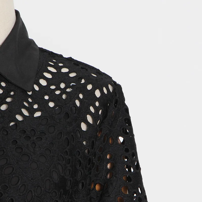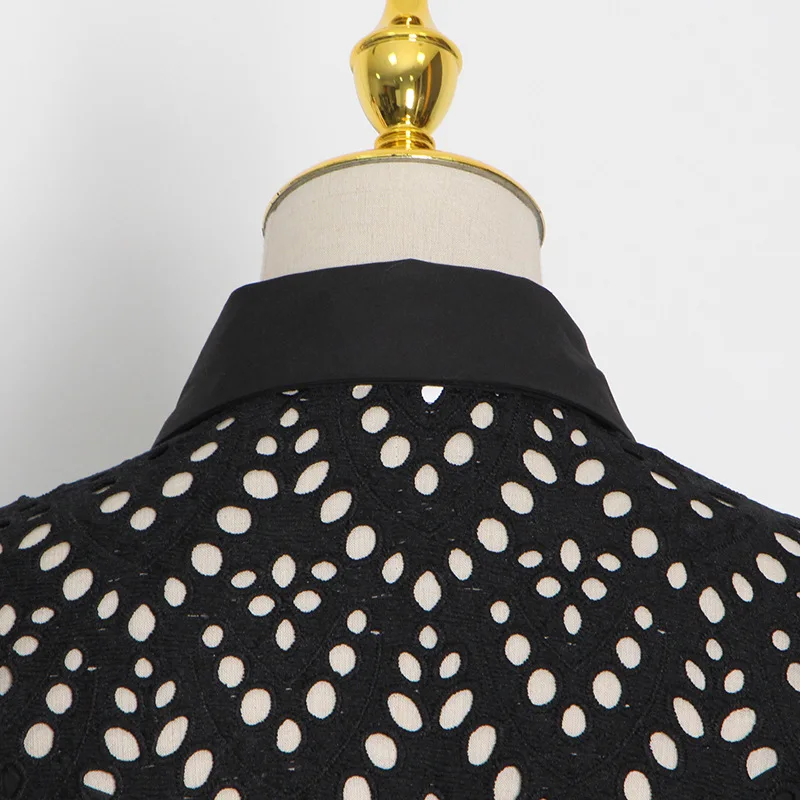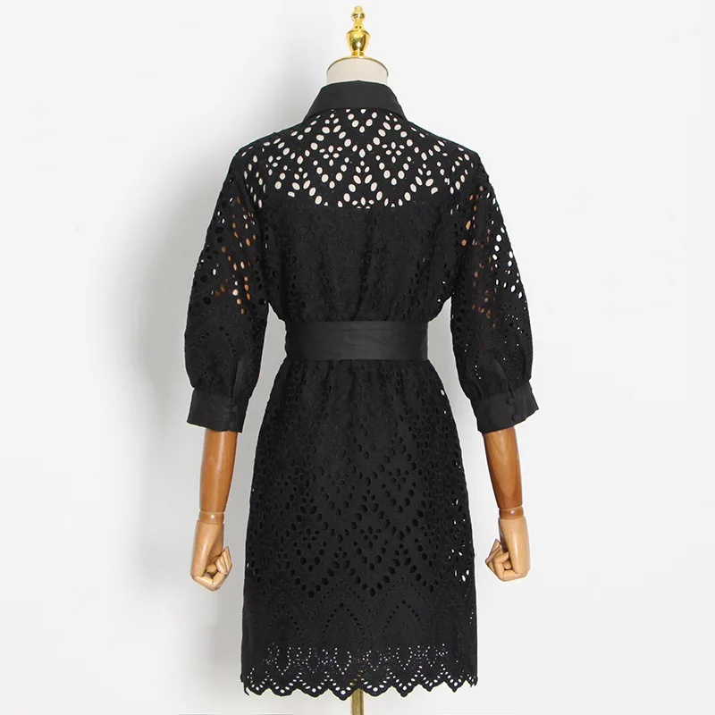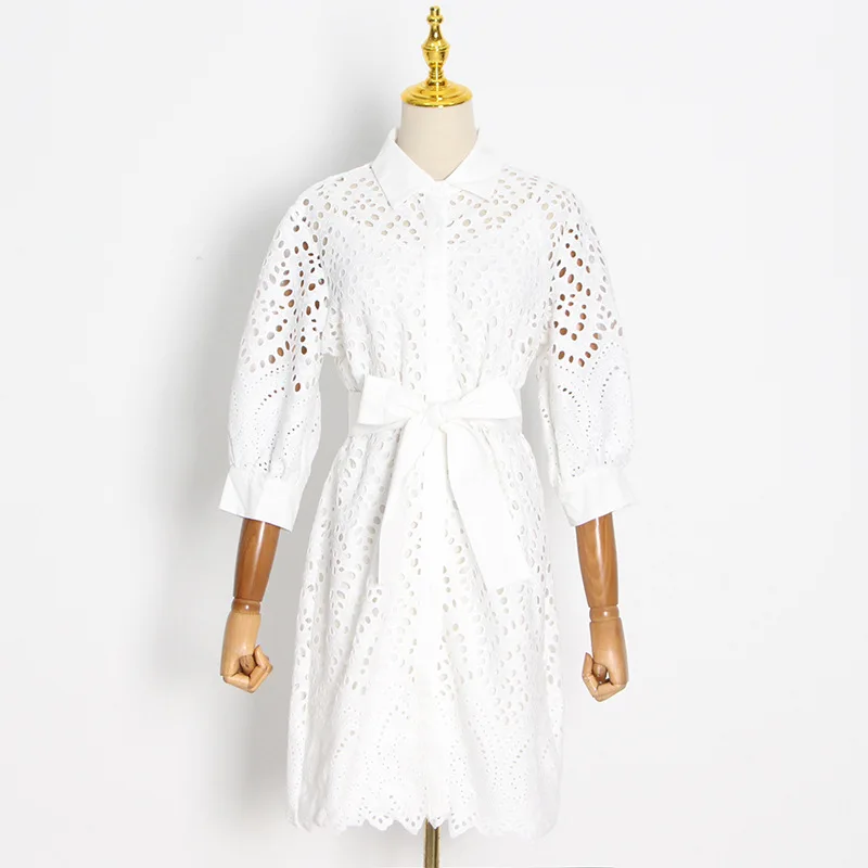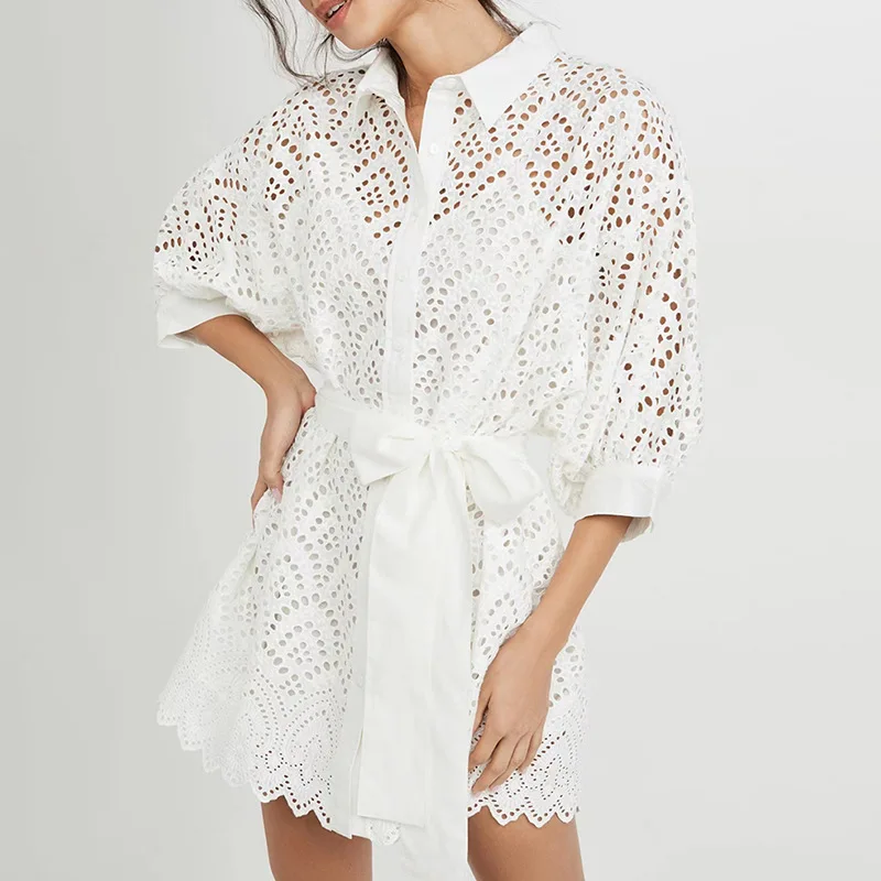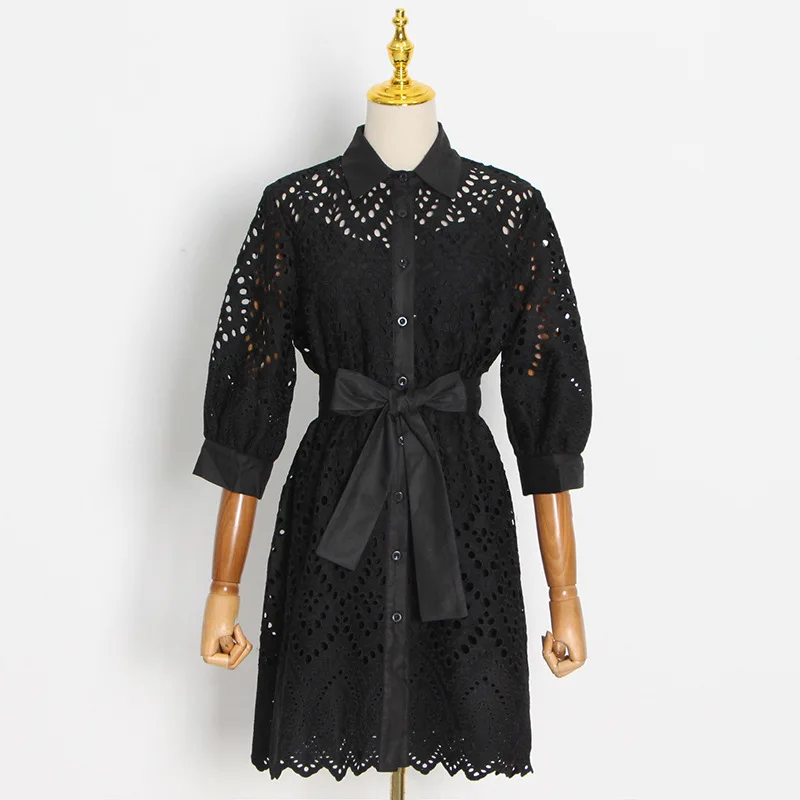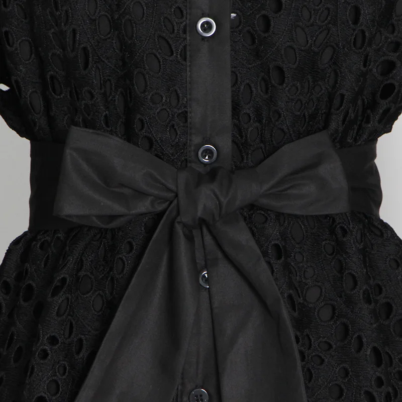 Hollow Skirt 2022 Summer New Ropa Por Mayor Lapel Single-breasted Waist Bow Tie Dress