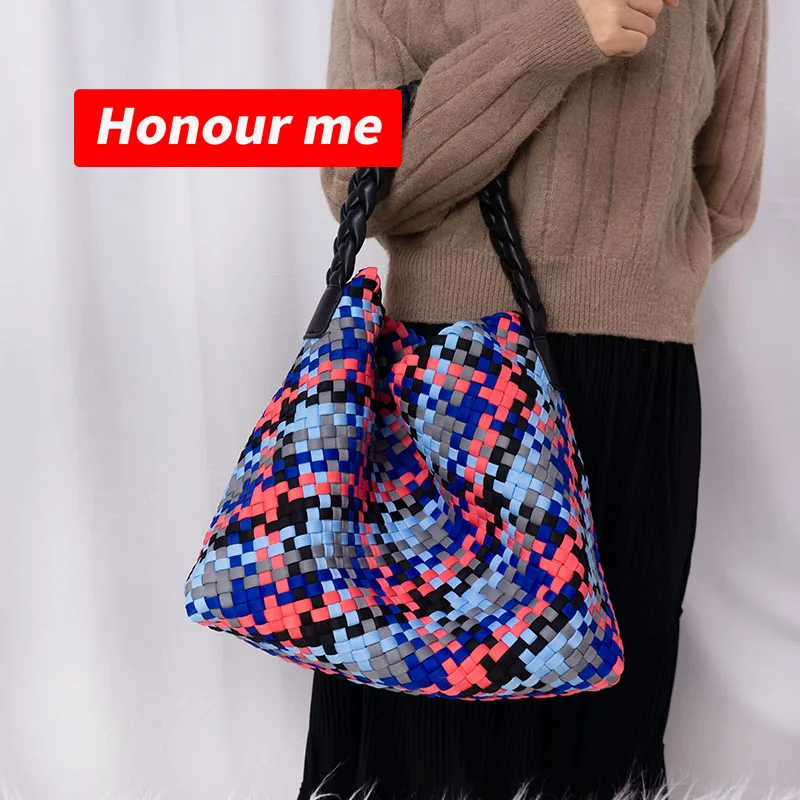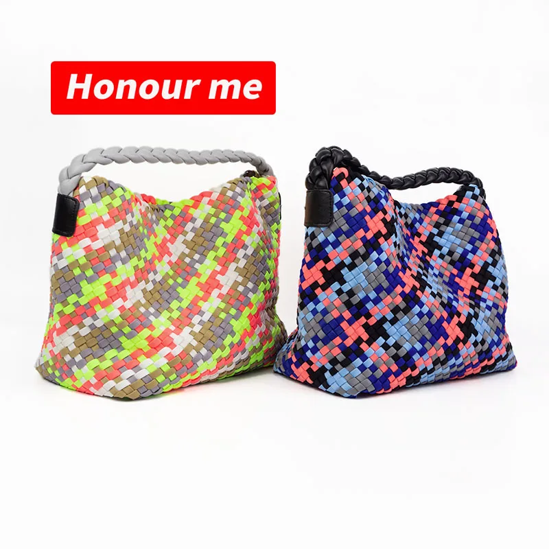 HONOUR ME Hot Sell Customize Woven Neoprene Bag Shopping hand-knitted Beach Tote Bags Travel Hand Make bag