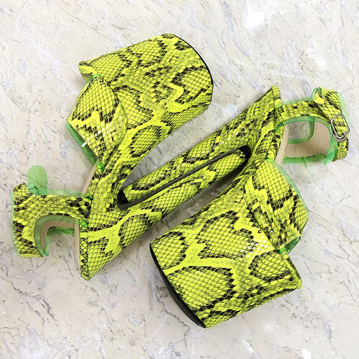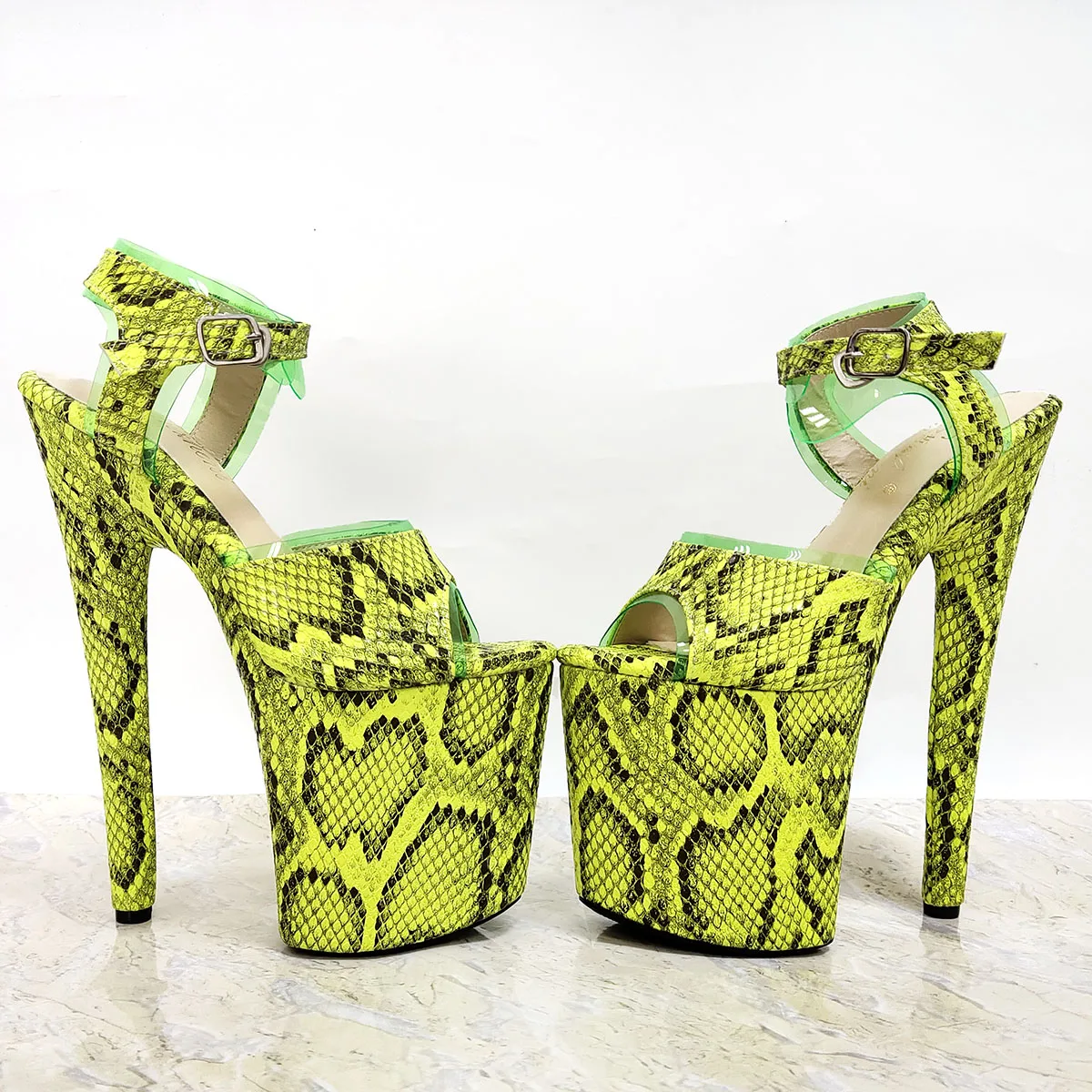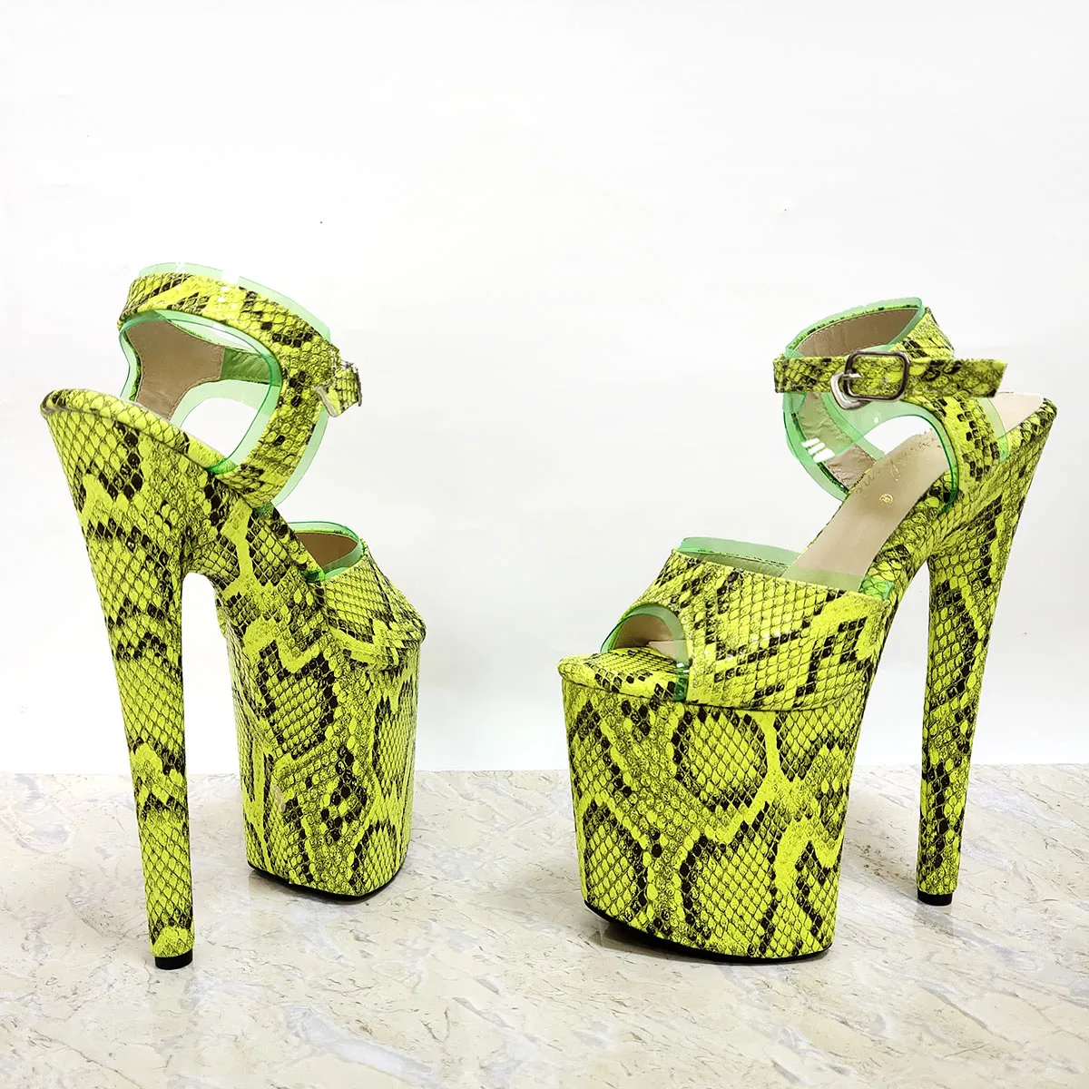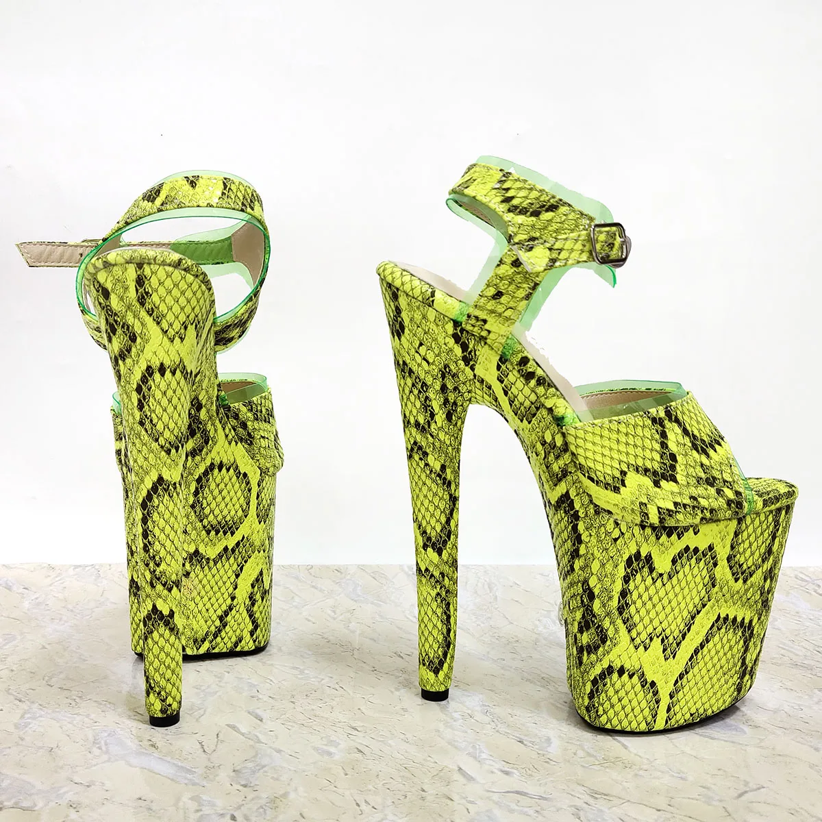 Hot 20cm Yellow Snake Print Thin Heels Peep Toe 8Inch Women's Nightclub Strip Pole Dance Models Catwalk Gothic Sexy Fetish Shoes