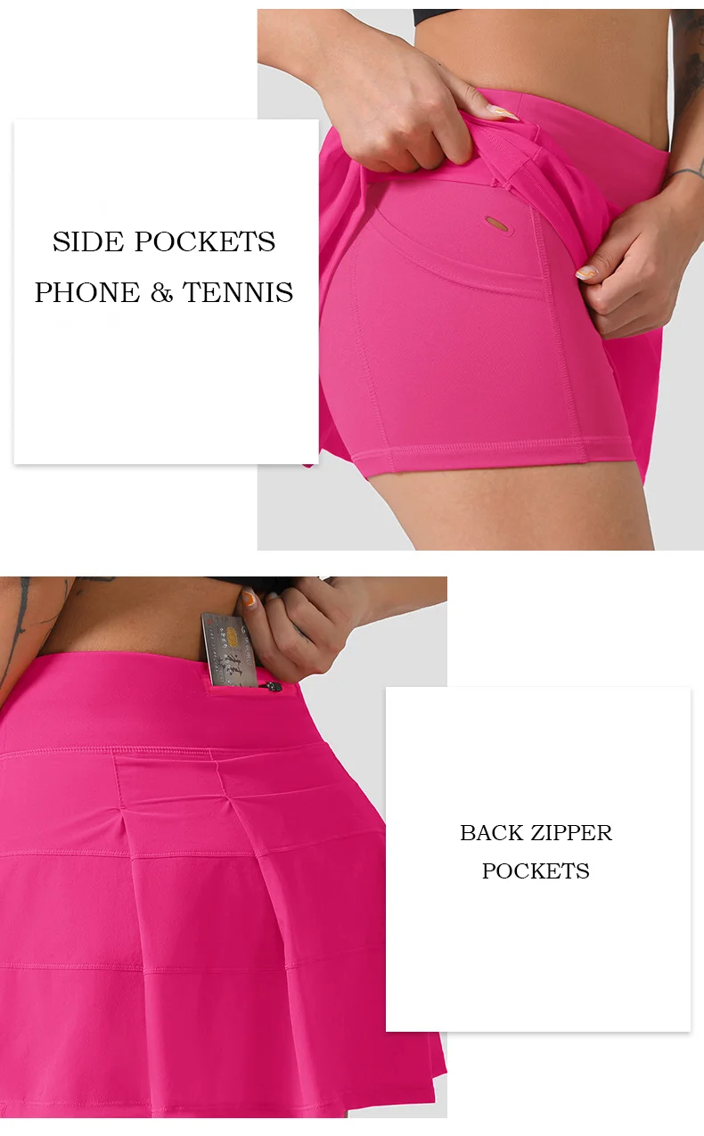 Hot Casual Athletic Tennis Golf Workout Running Sports Pleated Skirt Skorts Skirts for Women with Zipper Pocket