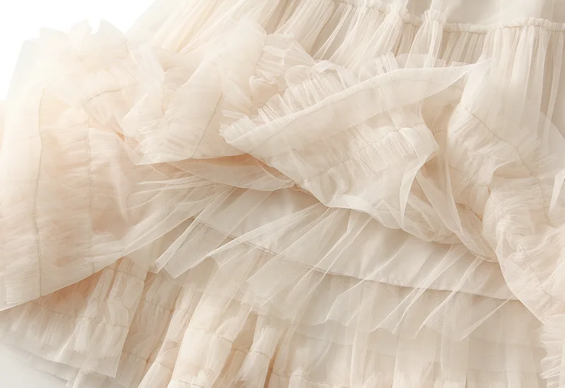 Hot Fashion High Waist Long Maxi Skirts for Women Luxury French Party Mesh Patchwork Tutu Pleated Skirt Woman Korean Faldas Jupe