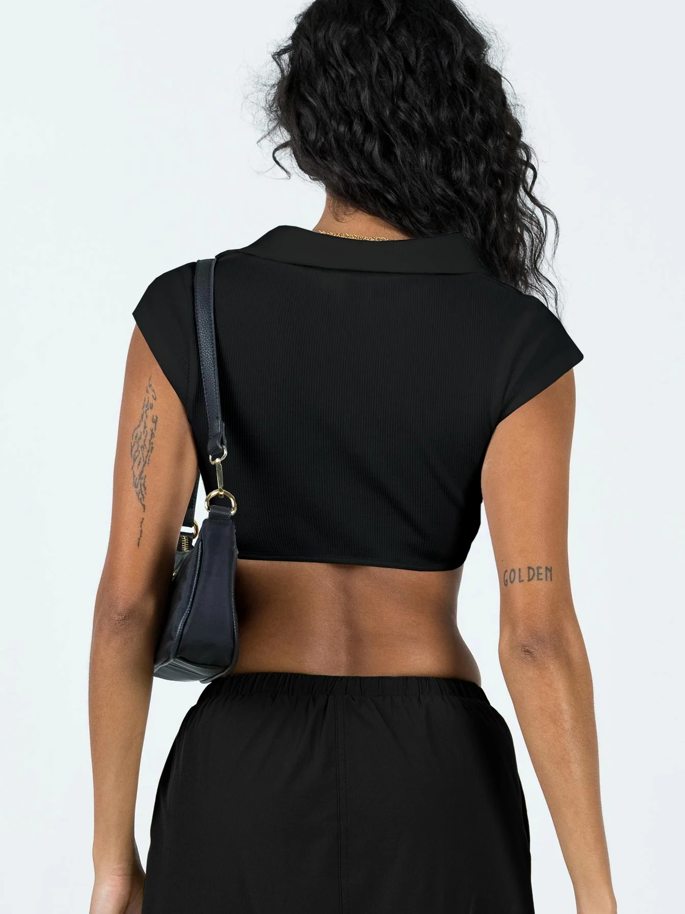 Hot Ribbed V Neck Summer Style Baby Tee Crop Top Y2k T Shirt