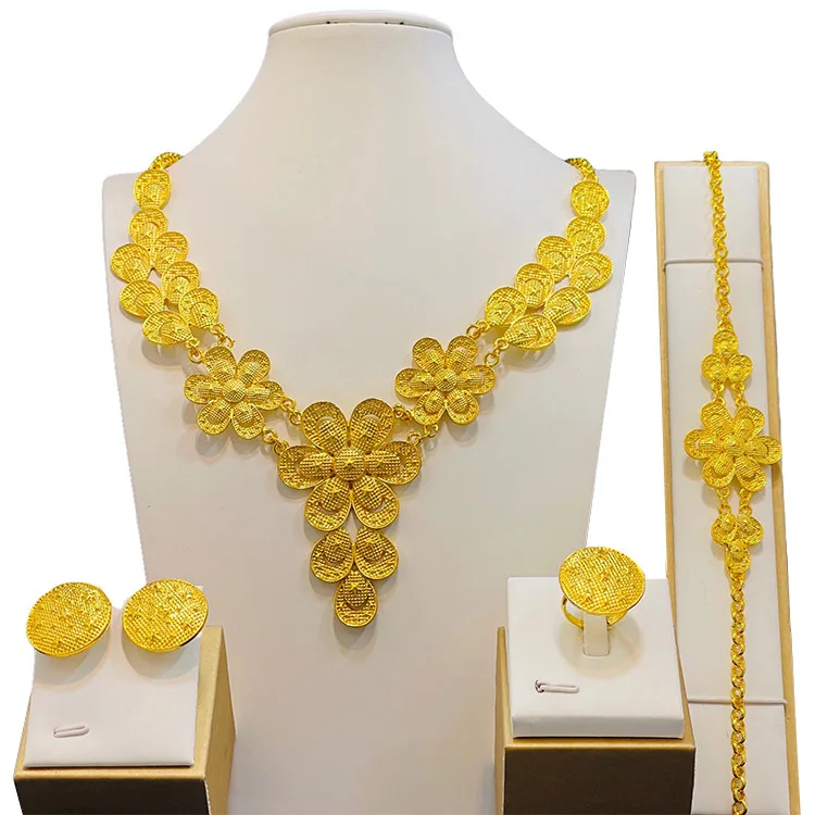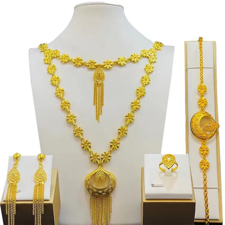 Hot Sale 24K Turkish Jewelry Bridal Wedding Fashion Jewelry Sets Necklace Earrings Ring Bracelet