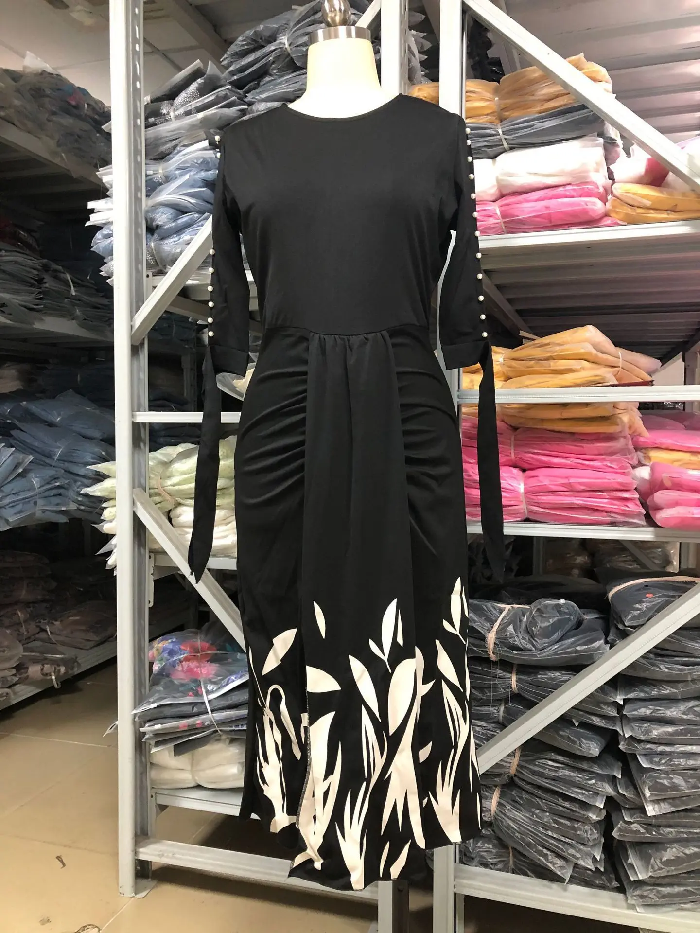 Hot sale Amazon spring and summer new sexy print cutout lace-up pleated office dress for women