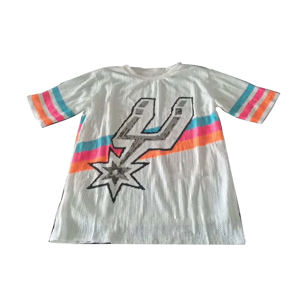 hot sale basketball Style Party Dresses Sequin Spurs fashion loose shirts Women sequins long t shirt