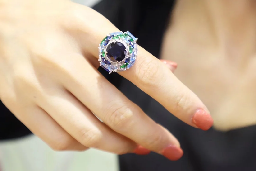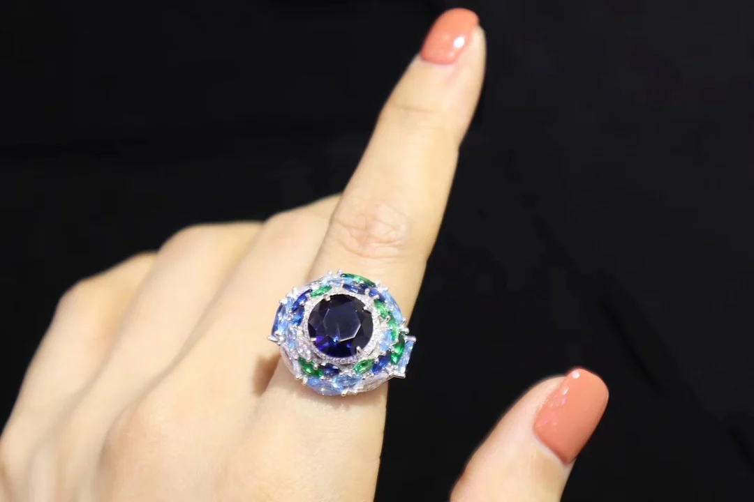 Hot Sale Beautiful Sapphire Blue Ring With Open Style 925 Sterling Silver High quality CZ For Women