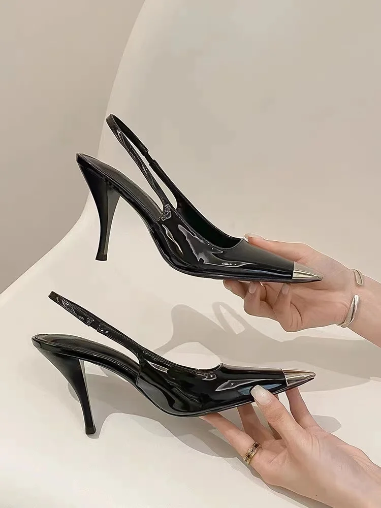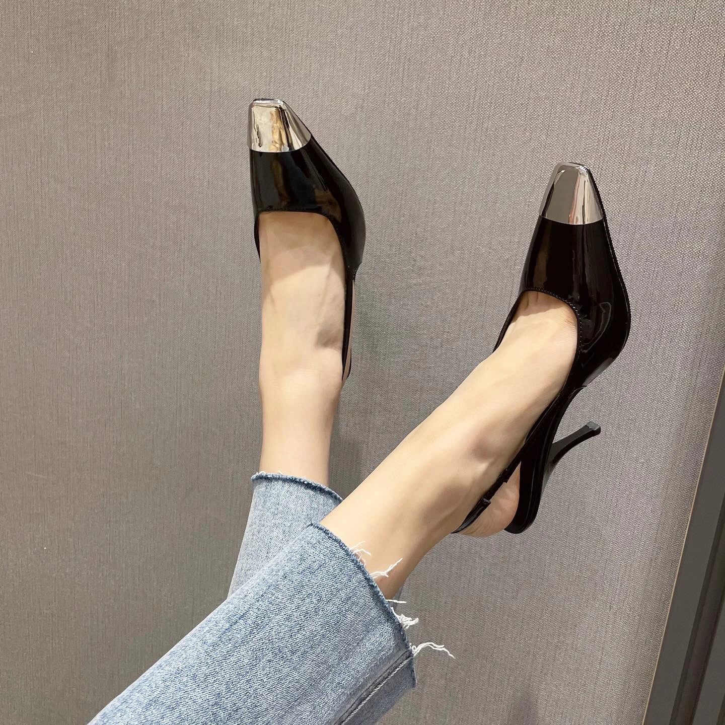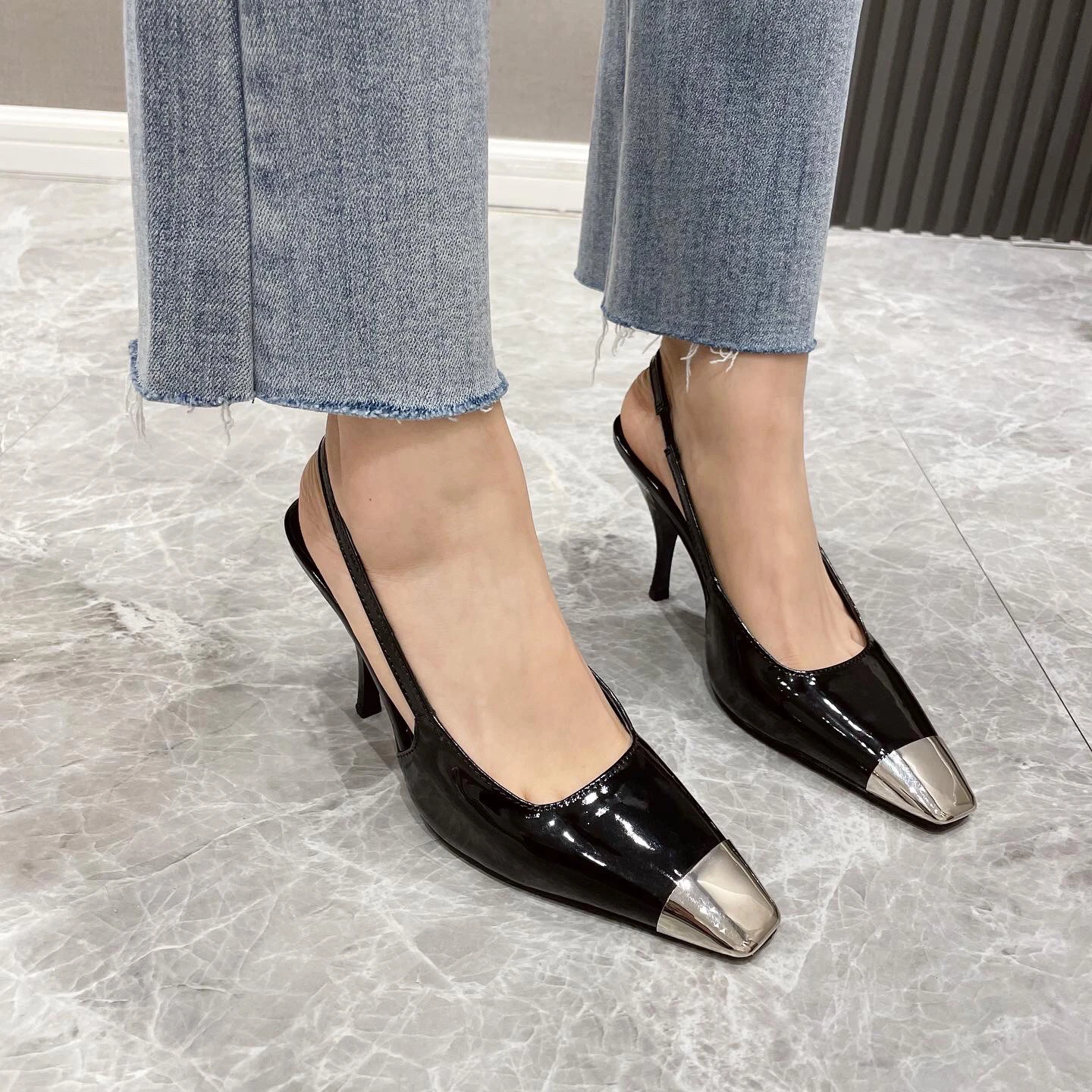 Hot Sale Casual Metal Square Toe, Black Stiletto, Baotou High Heels 2023