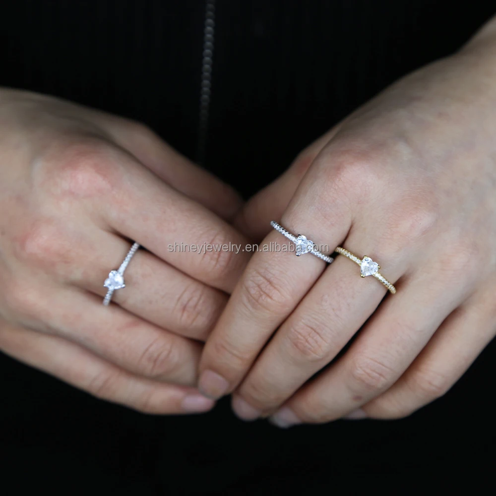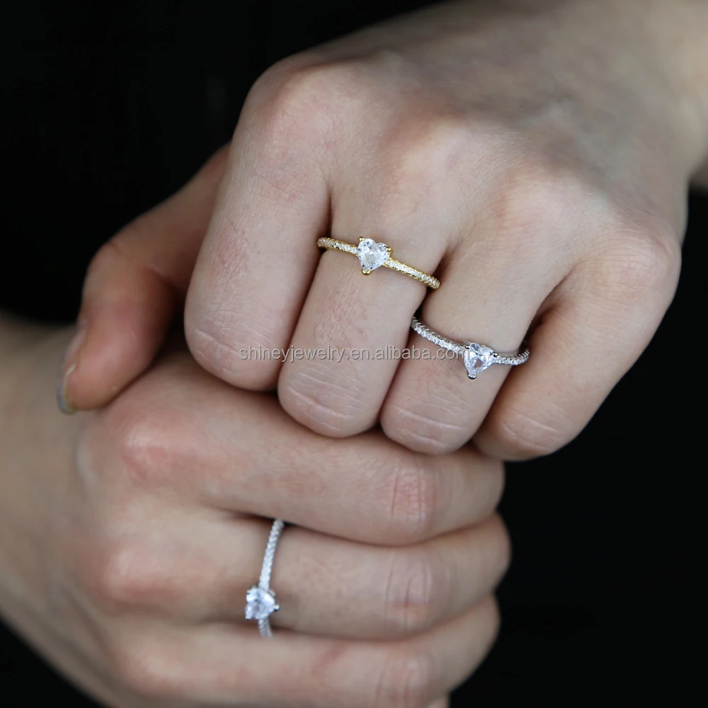 Hot sale Charming Heart Charm Zircon Rings For Women Wedding Vintage Valentine's Day 925 Sterling Silver Jewelry