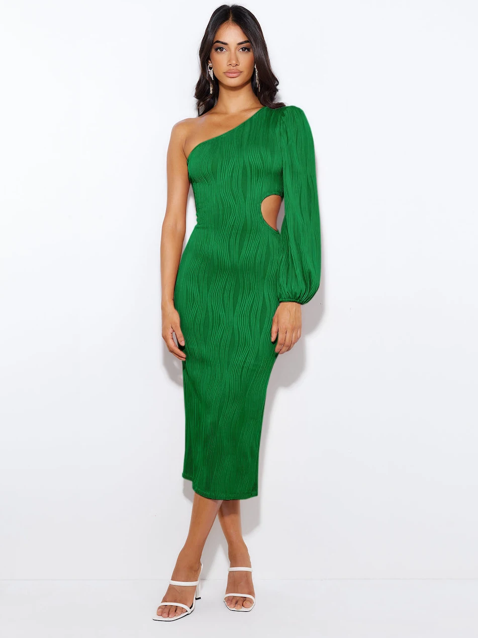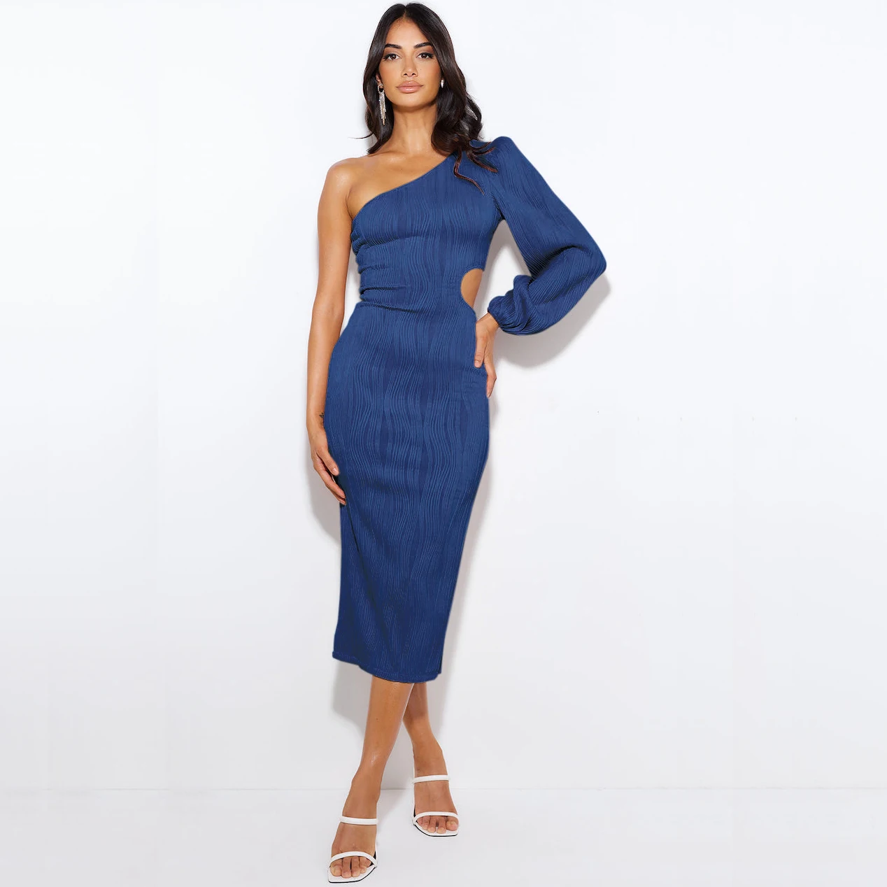 Hot Sale Cocktail Single Sleeve Sexy Lady Formal Bodycon Evening Dresses Elegant Classy Women Party Dress