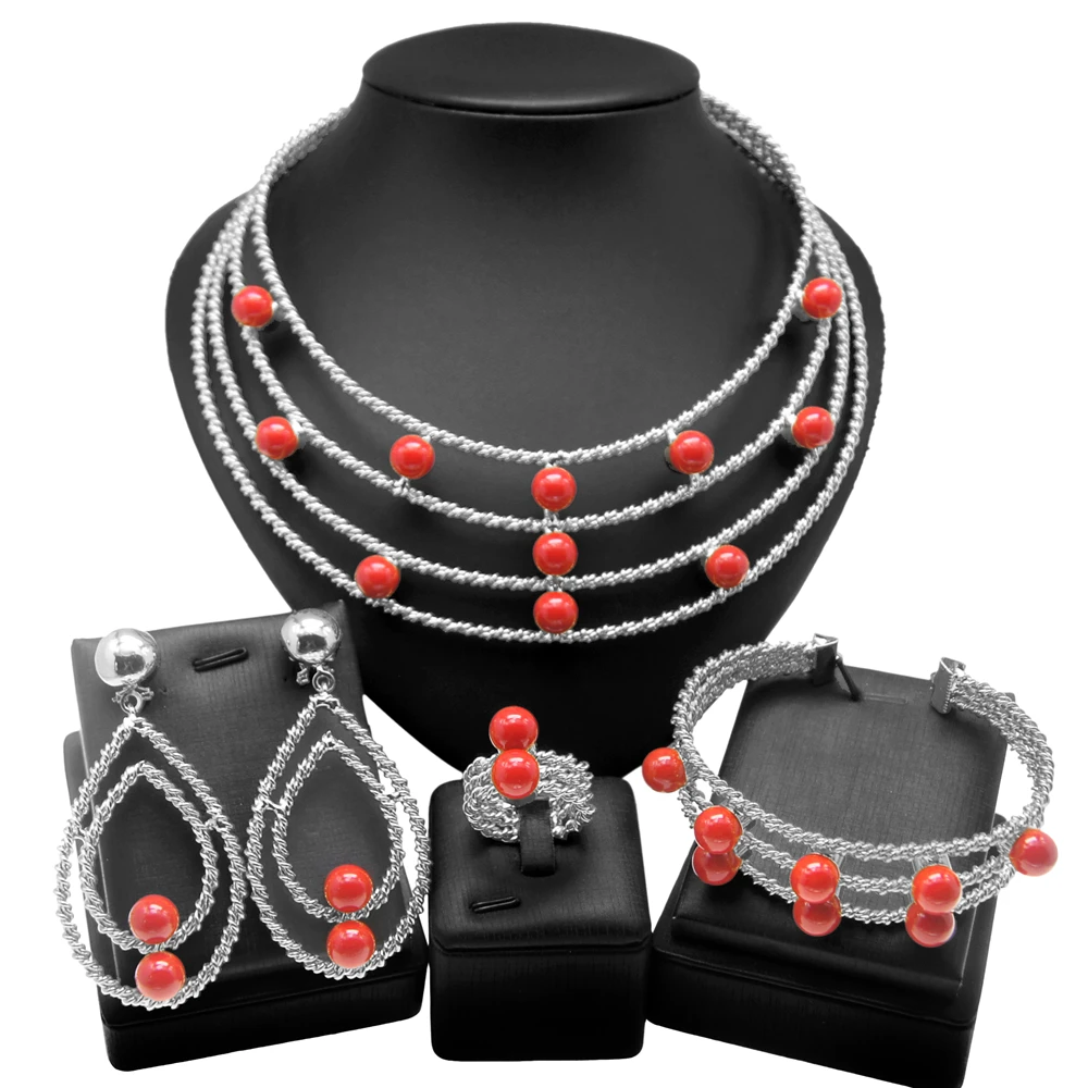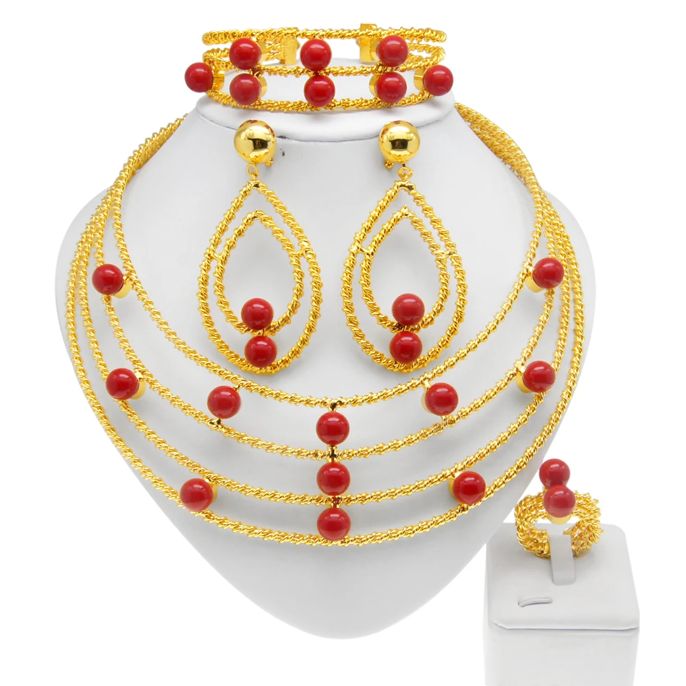 Hot sale Crystal Stones Necklace Ring Earrings Bracelet Brasil Jewels Wedding Party Gift Gold Plated Women Children Jewelry Set