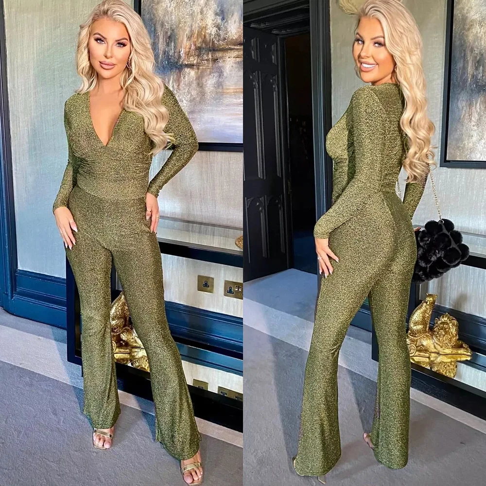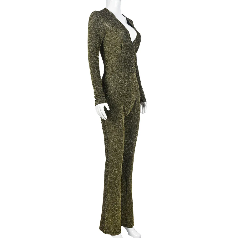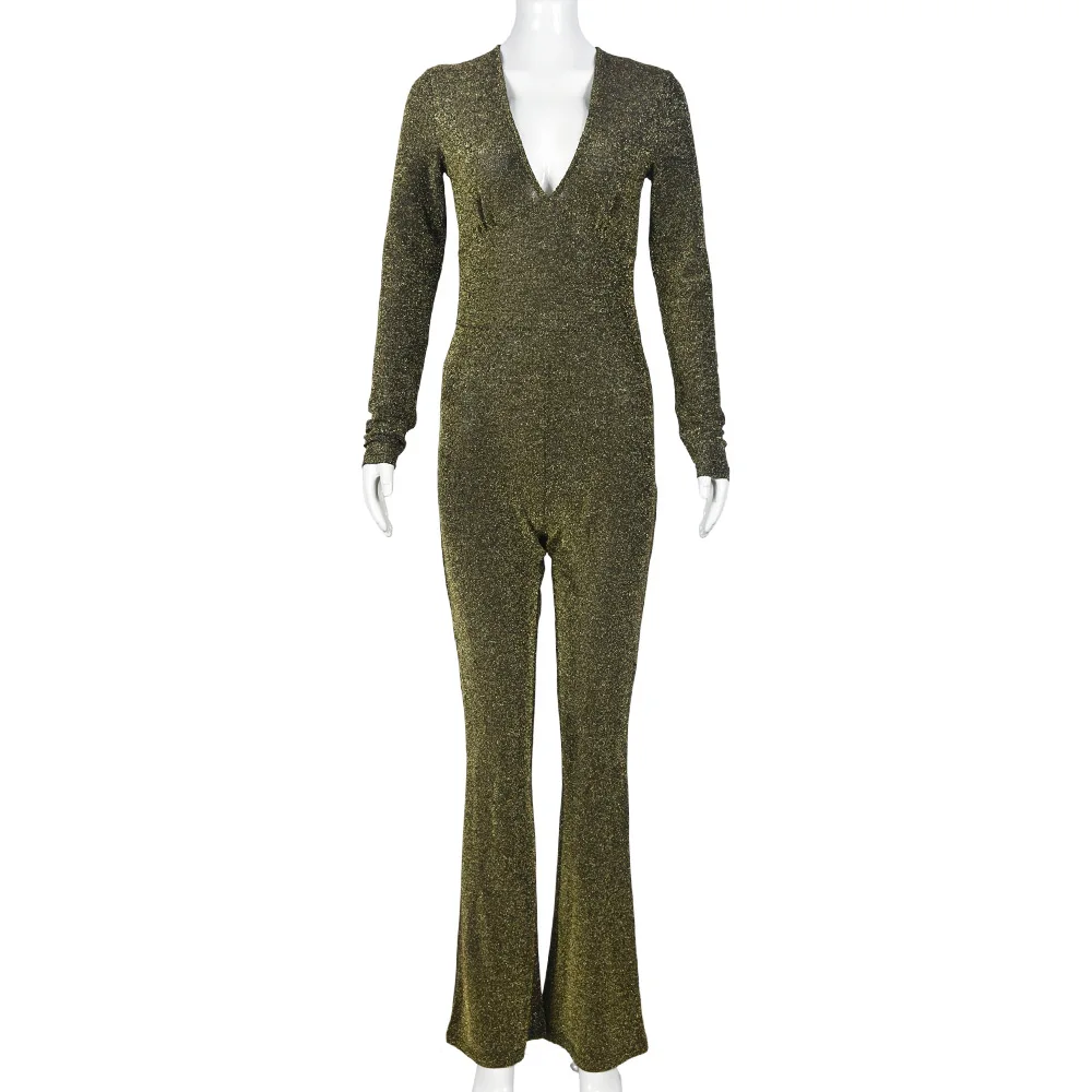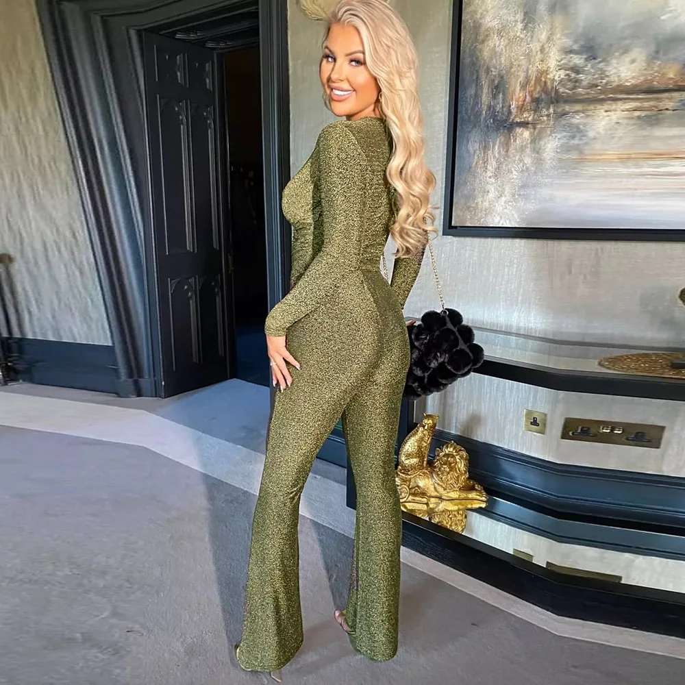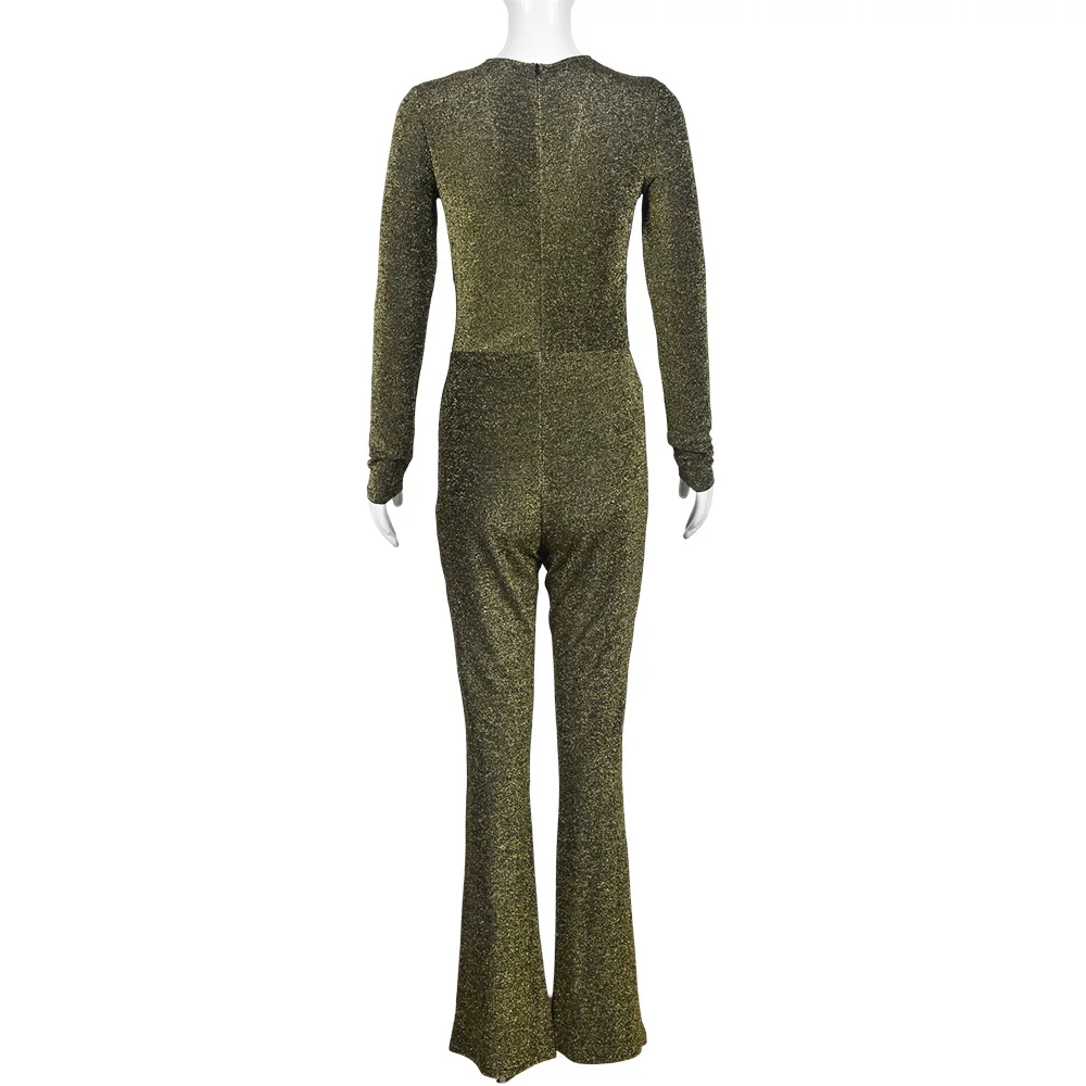 Hot Sale Fall Women's V-neck Long Sleeve Jumpsuits 2023 New Sexy Cutout Flared Jumpsuit Street One Piece Woman Rompers