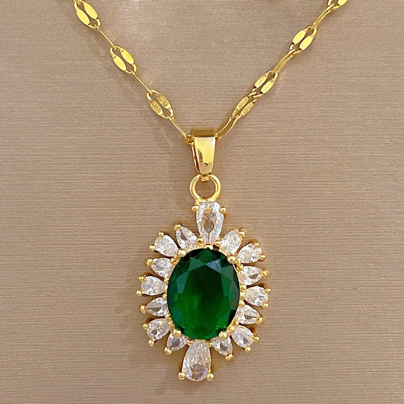 Hot Sale Fashion 18k Gold Plated Stainless Steel18k Gold Cubic Zirconia Pendant Necklace And Earrings Jewelry Sets For Women