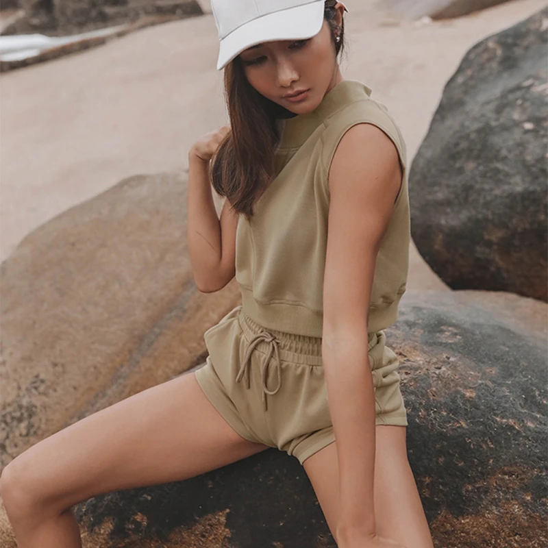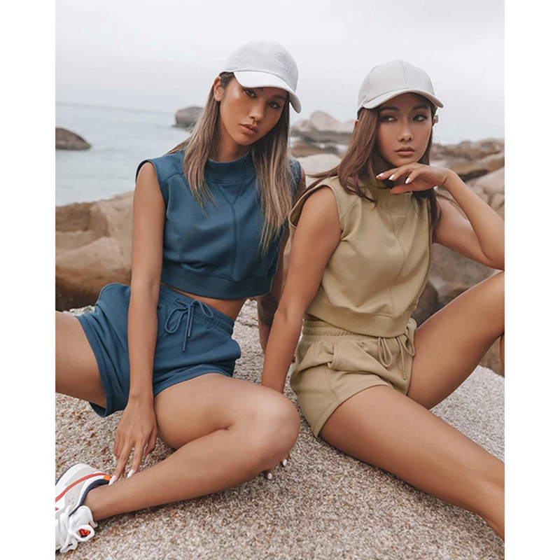 Hot Sale Fashion Camis And Biker Shorts Sets Women Casual Sleeveless Crop Tops Two Piece Set Workout Active Wear Tracksuits
