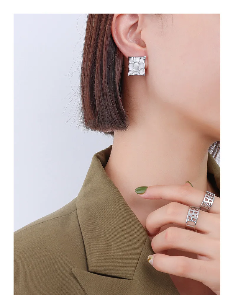 Hot Sale High Quality Square Geometric Earrings Simple Stainless Steel Stud Jewelry
