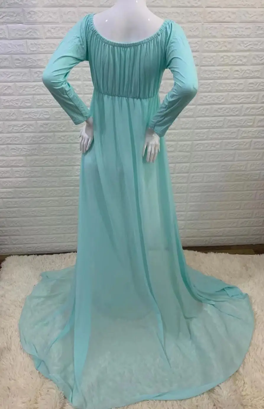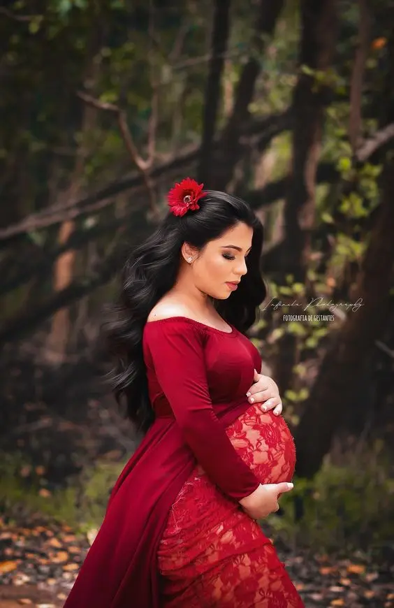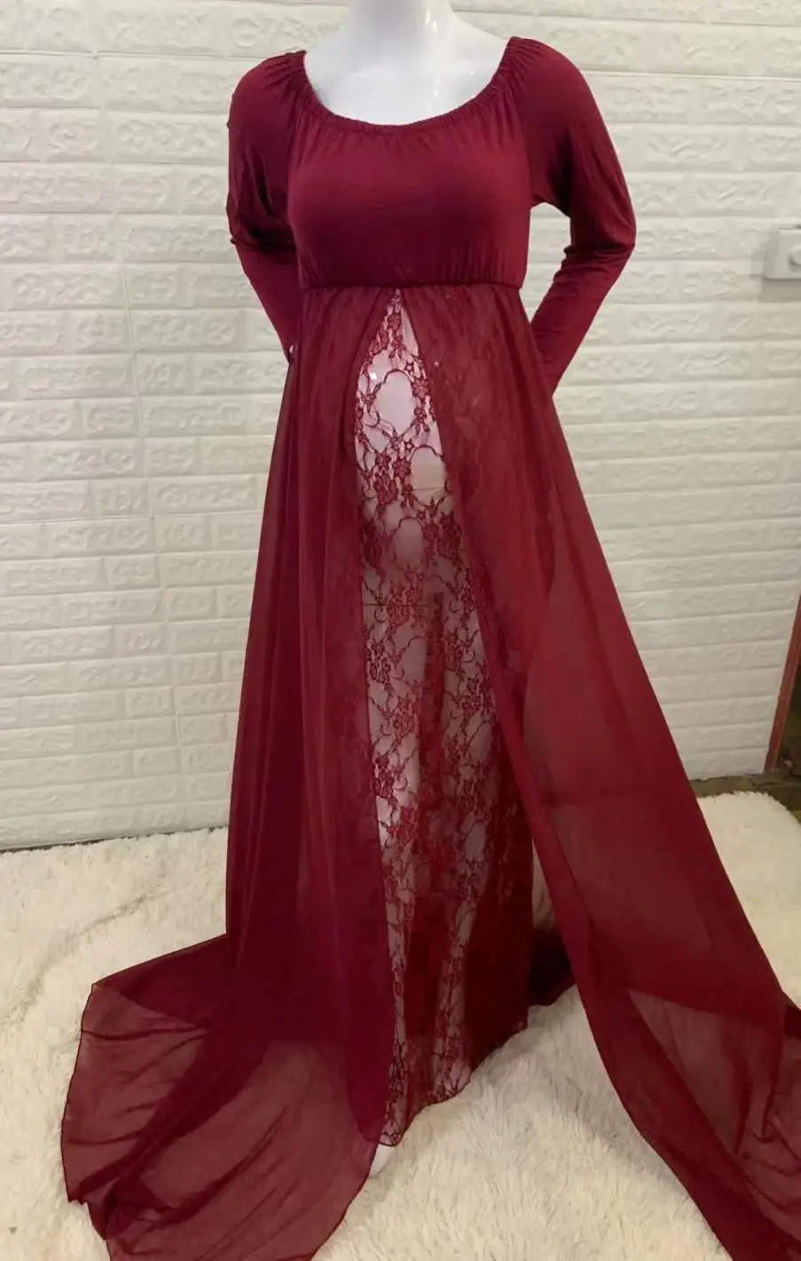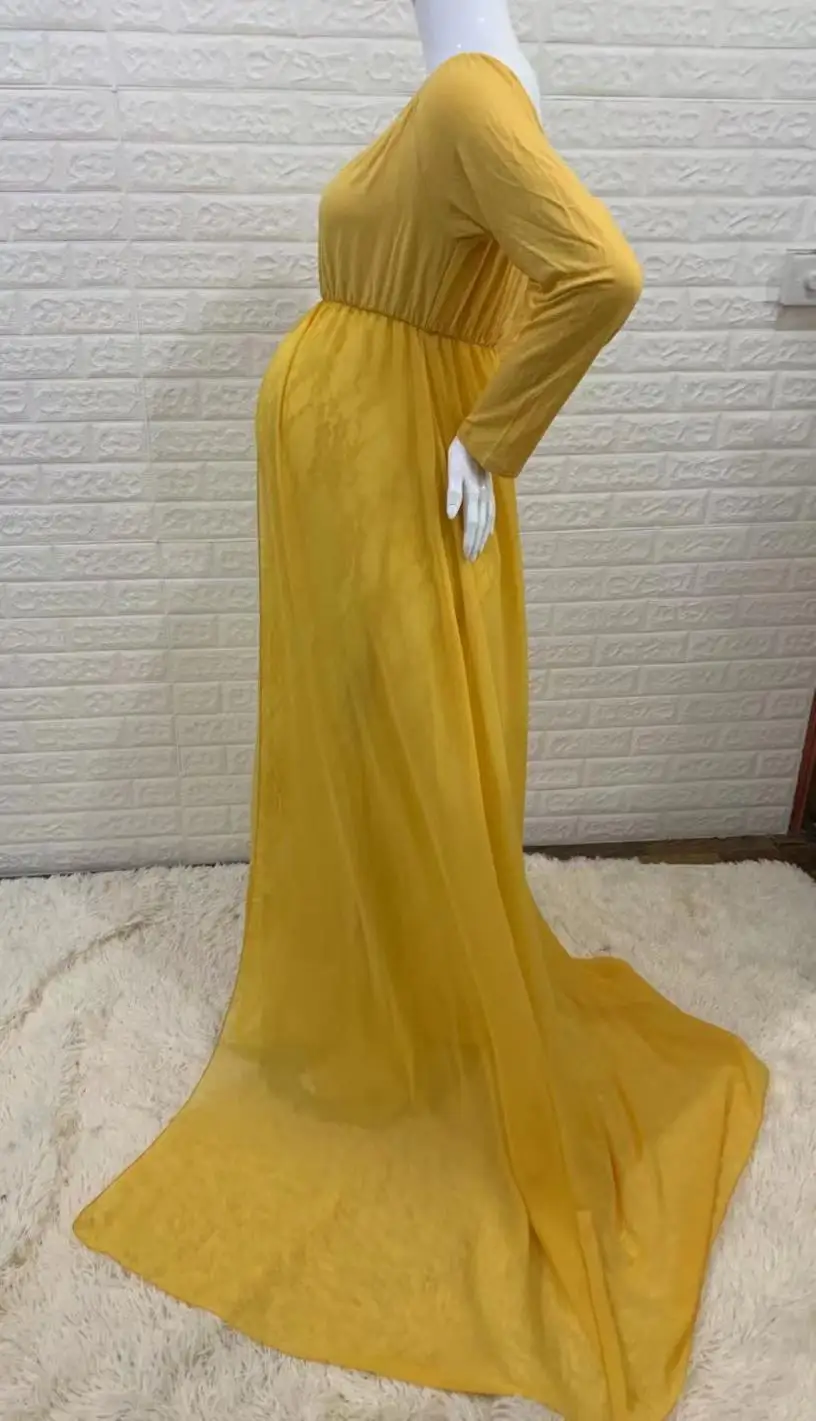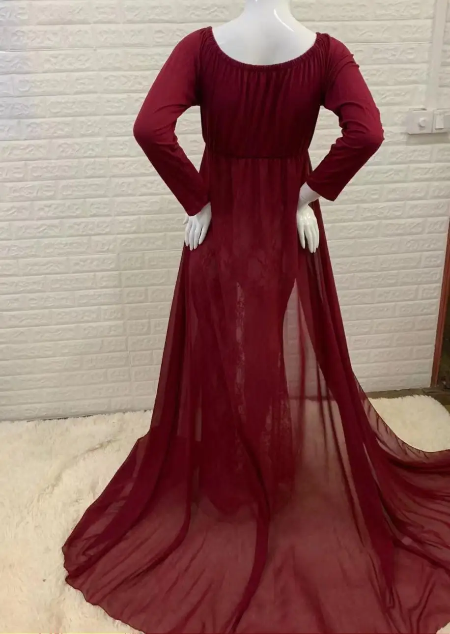 Hot Sale Long Sleeve Lace Stitching Mesh Photoshoot Pregnant Women Long Casual Wedding Tulle Dresses
