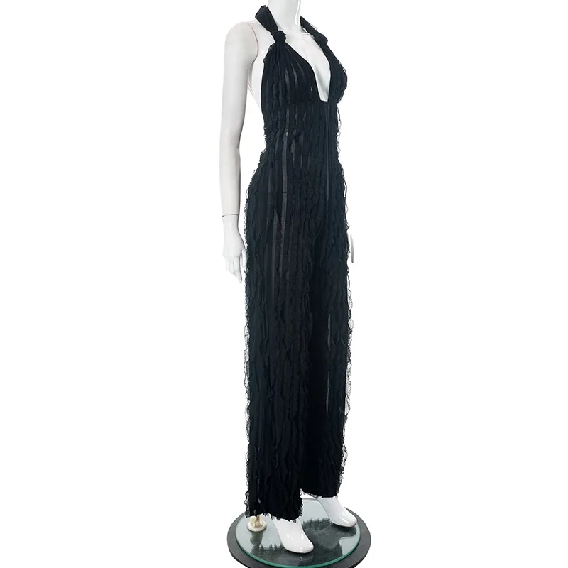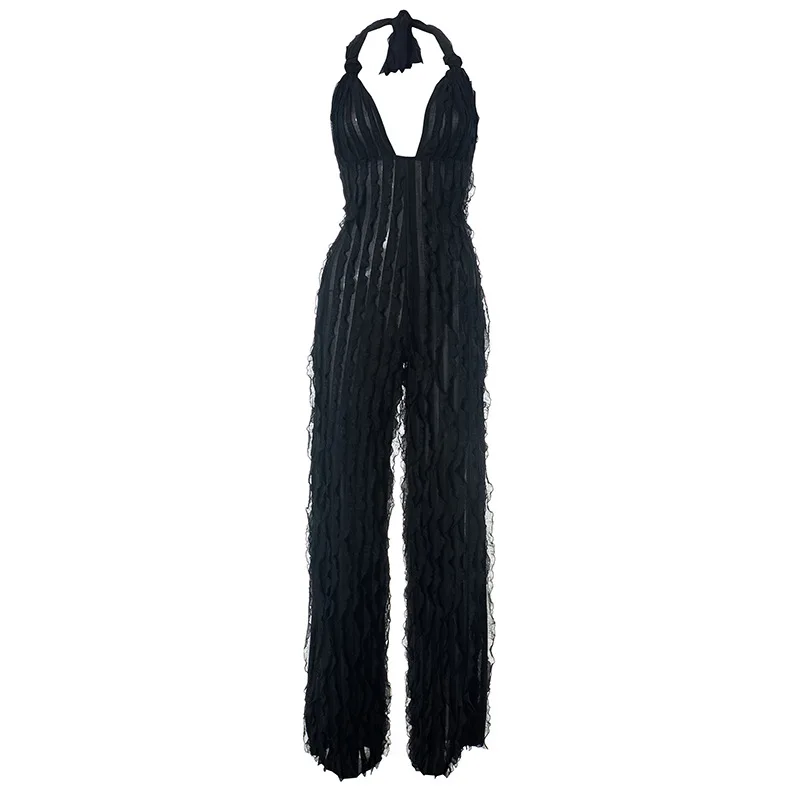 Hot Sale Mesh Jumpsuits Night Club Outfits For Women Streetwear See Through White Backless Jumpsuit