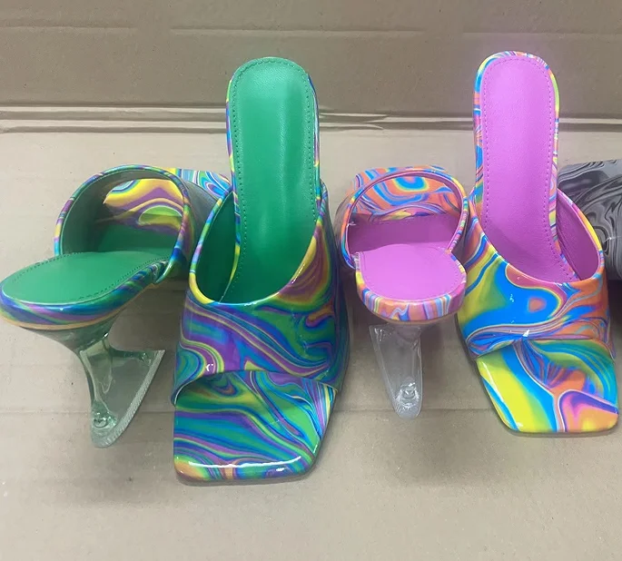 Hot sale New color heterosexual thick heel high heel sexy bar catwalk slippers cool 2024