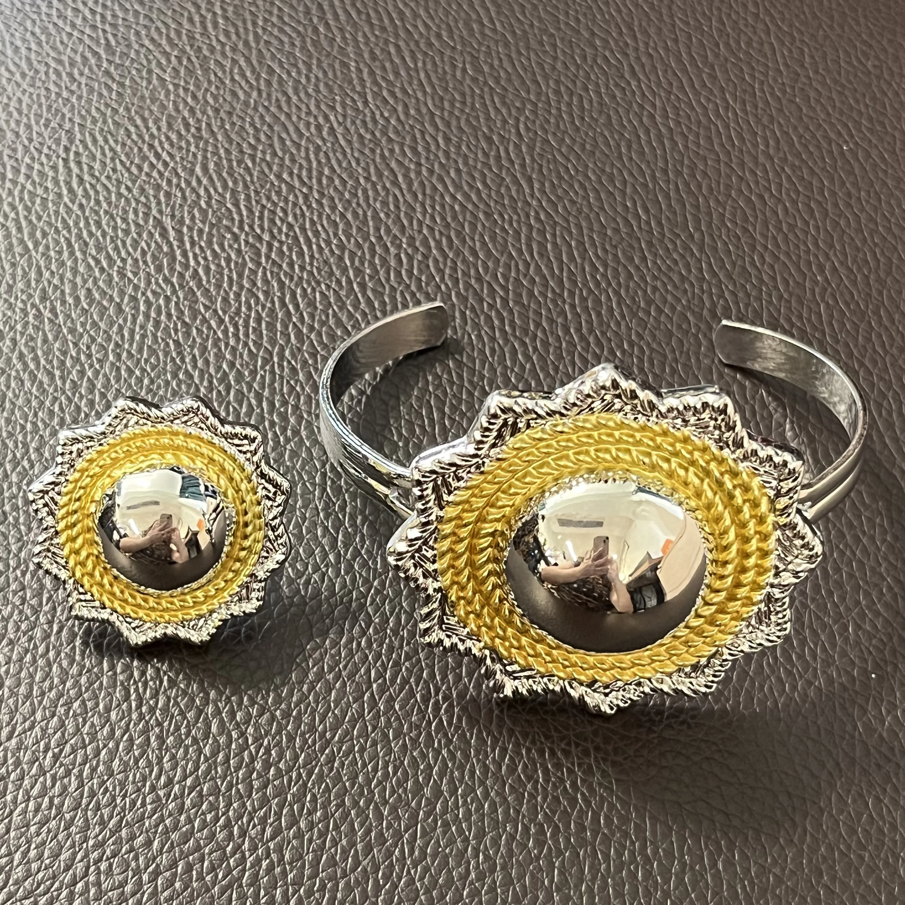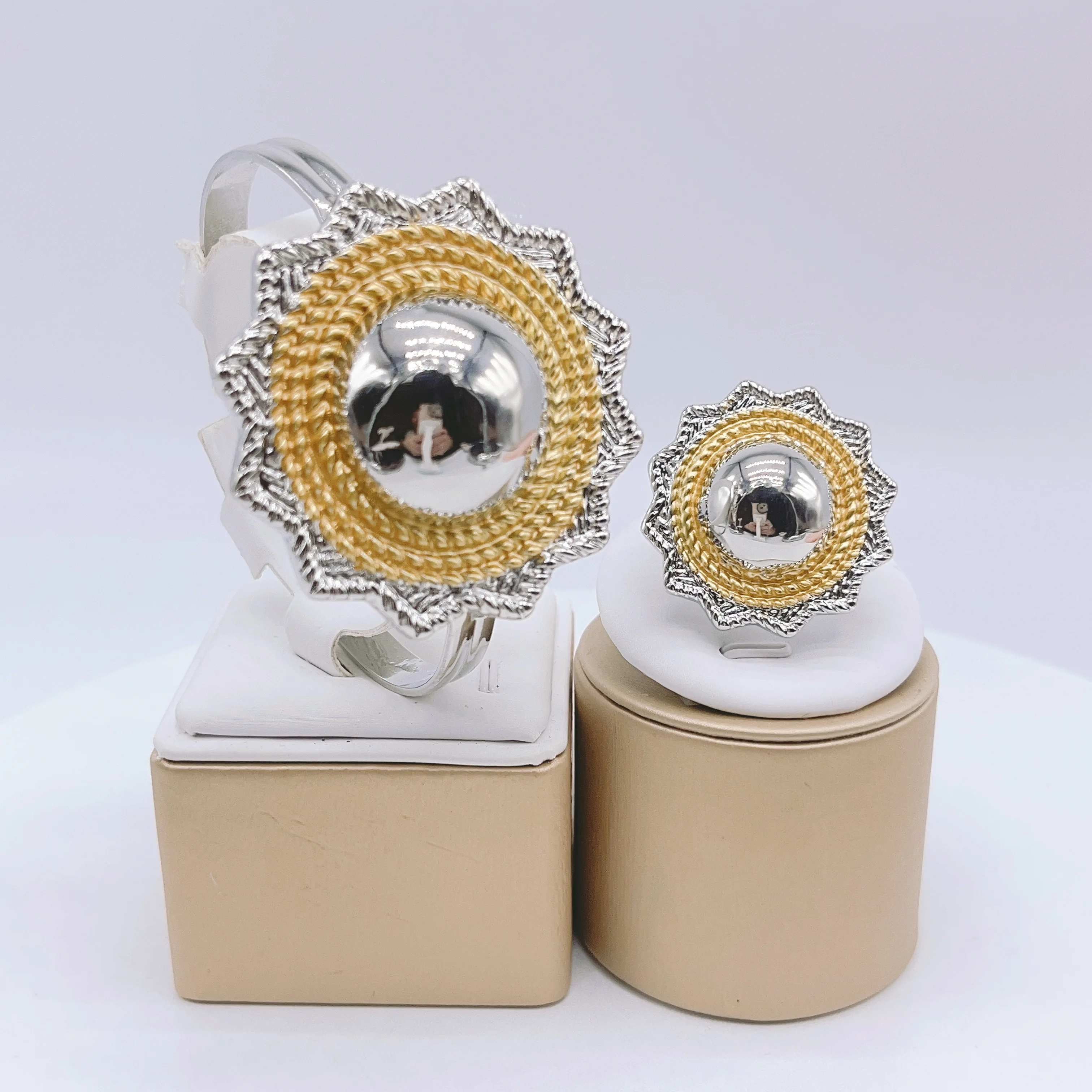 Hot Sale Wedding Party Gift Bridal Gold Plated Bracelet Ring Jewels Fashion Popular Copper Alloy Wholesale Jewelry set