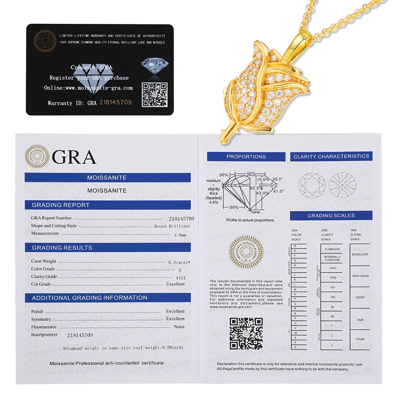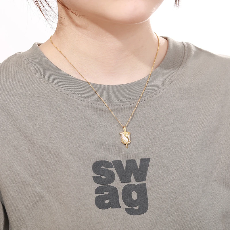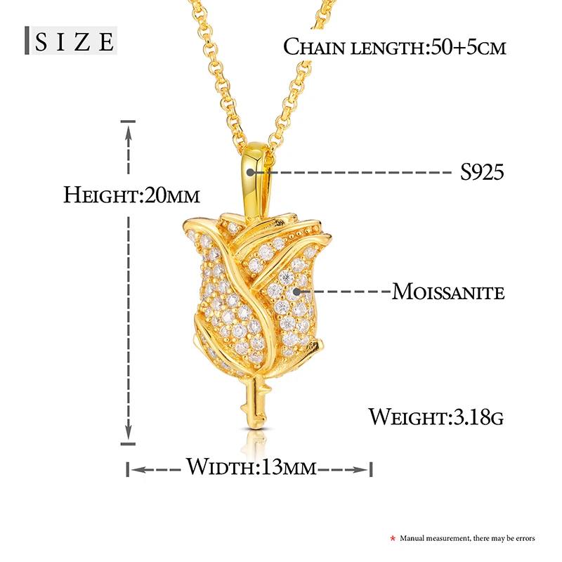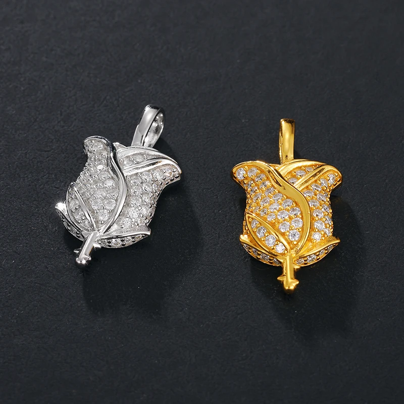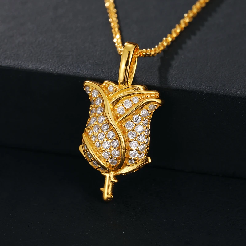 Hot Sale Women Jewelry Hip Hop 925 Sterling Silver VVS Moissanite Rose Pendant Necklace With Cable Chain