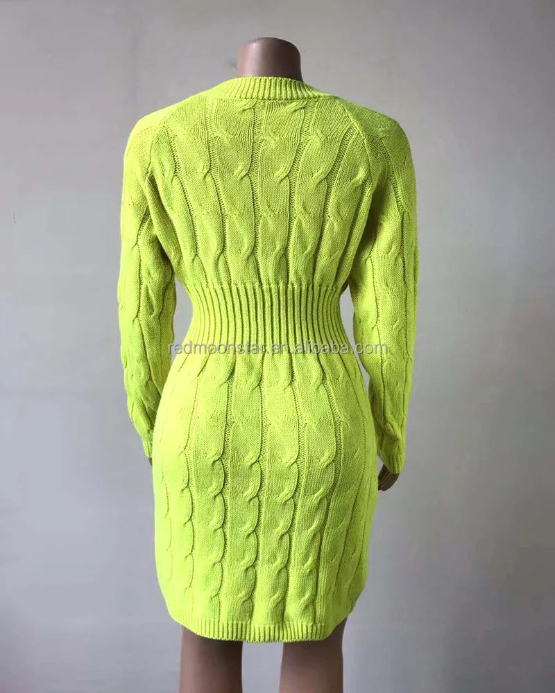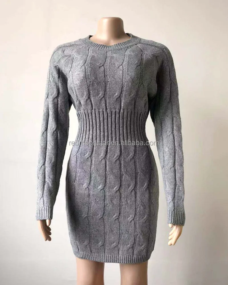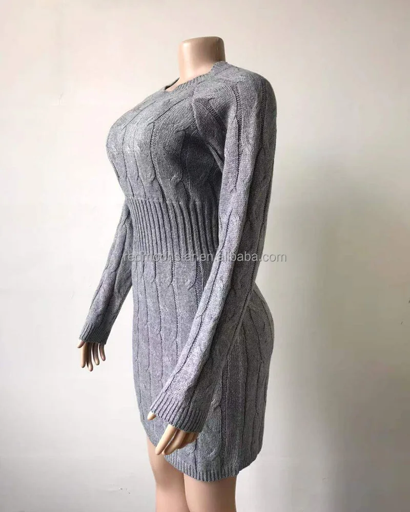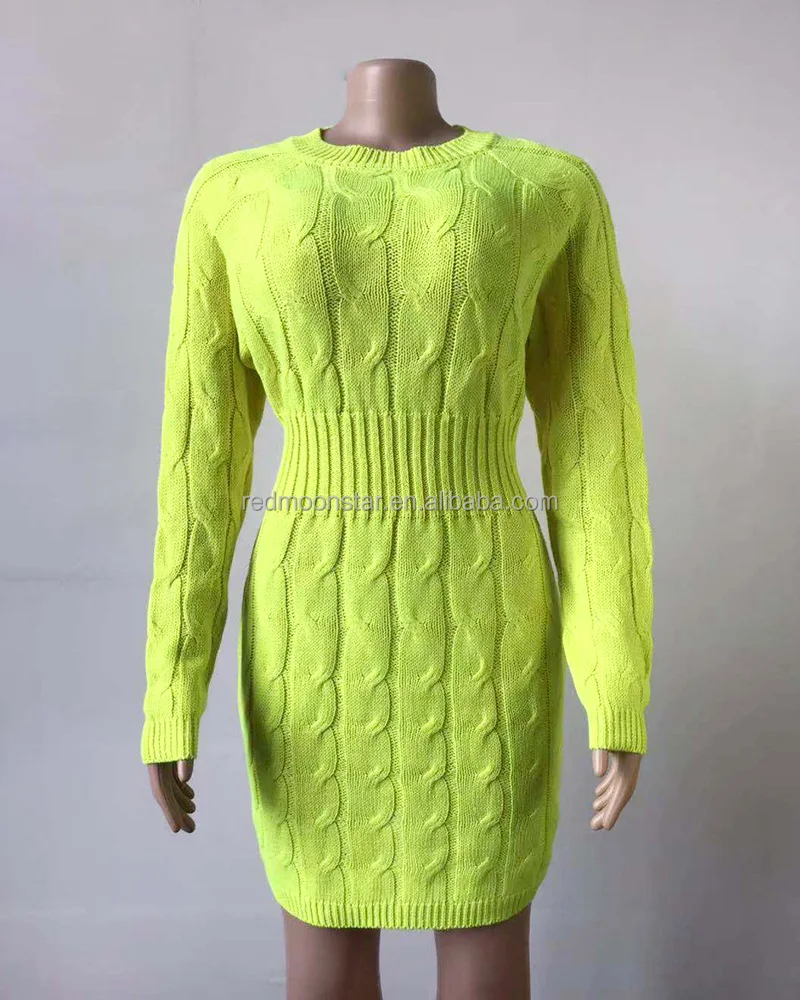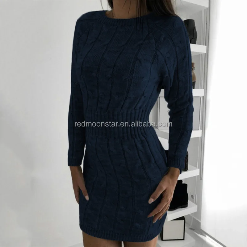 Hot Sell Autumn Wool Knit Twist Solid Color Sweater Woman Tight Sweater Dresses