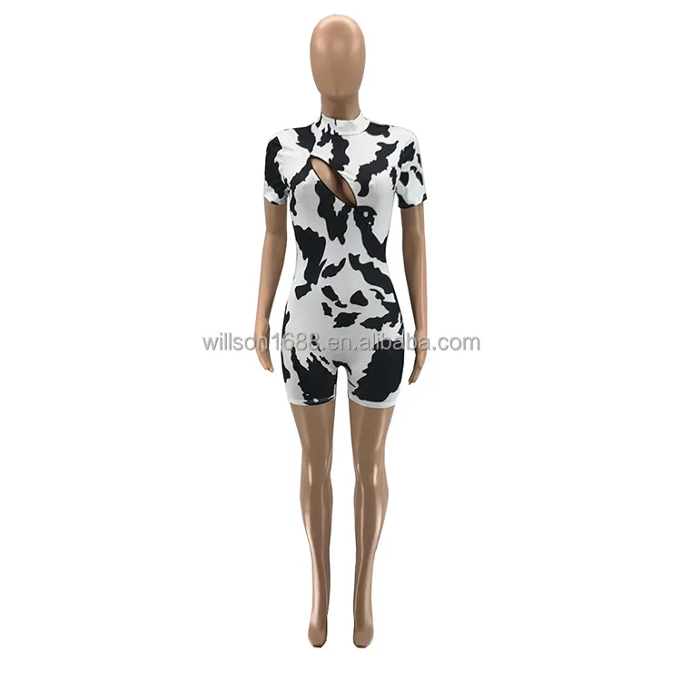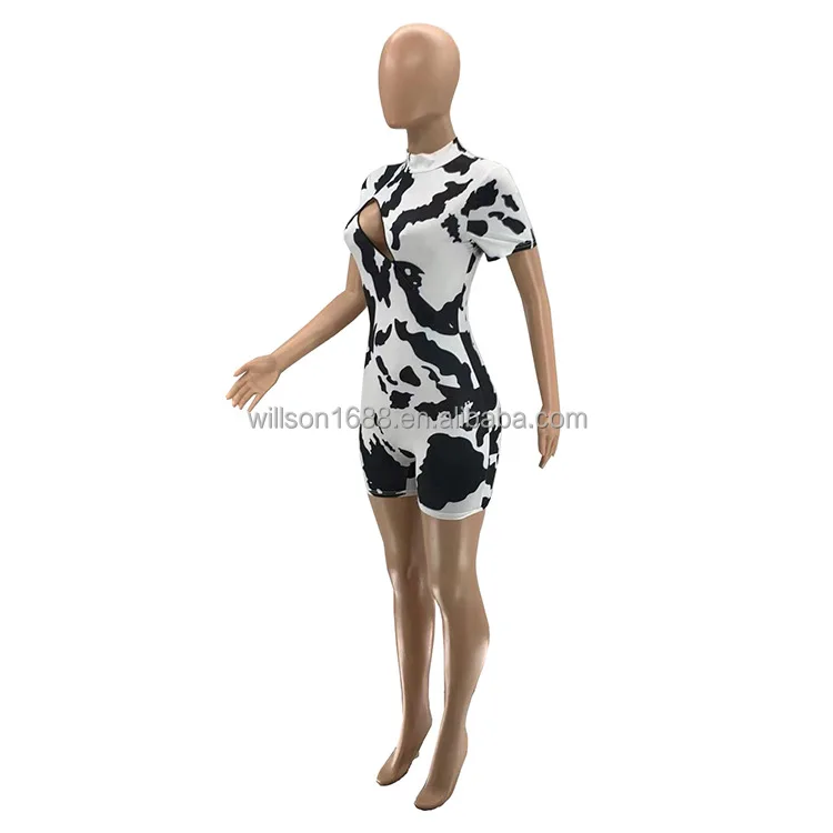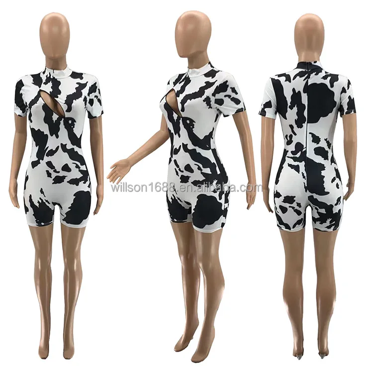 Hot Sell Custom Popular Fashion Trendy Cute Women One Piece Cow Print Short Jumpsuit