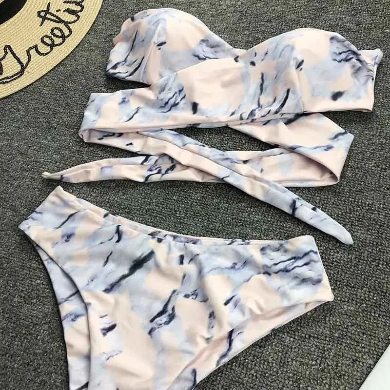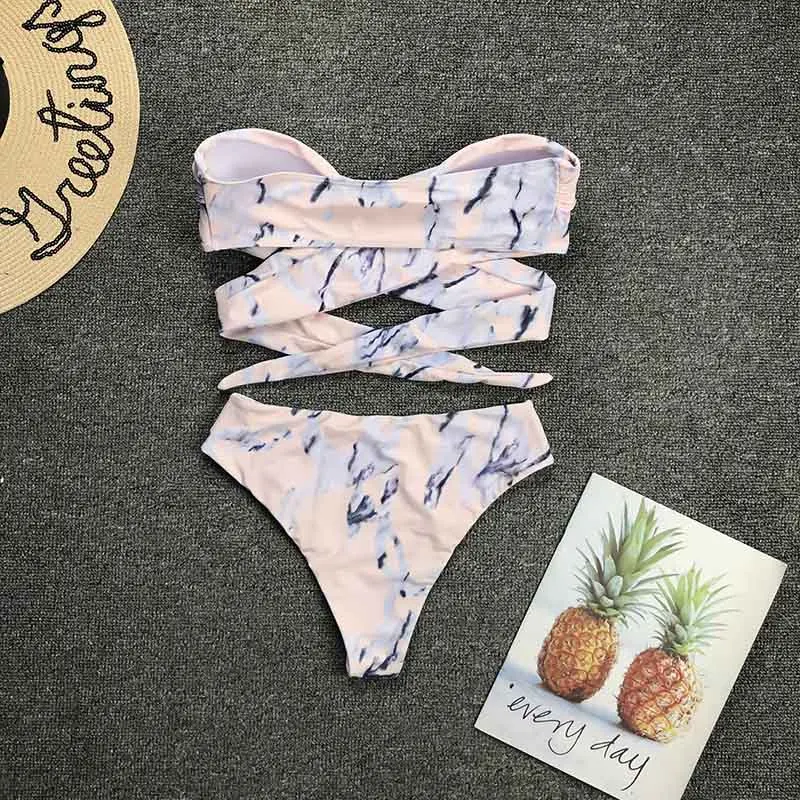 Hot Sell Sexy Marble Print Bandeau Swimwear High Waist Cover Up Swimsuit Bathing Suits For Women Luxury