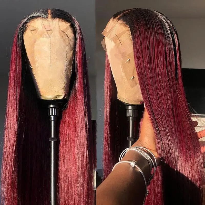 Hot Selling 1B/99J Silky Straight Peruvian Virgin Hair 13*4 Lace Front Wigs for Black Women