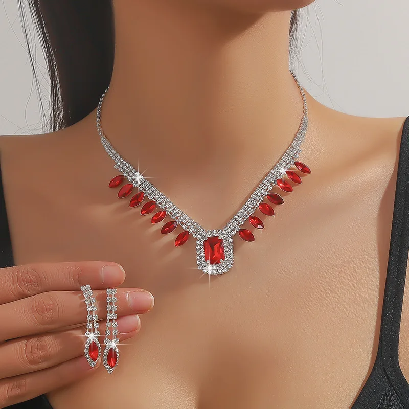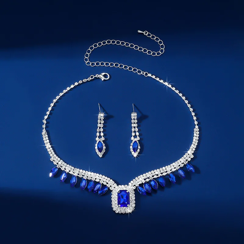 Hoyon Luxury Cubic Zircon Necklace Pendant Earrings For Women's Parties Blue Gemstone Jewelry Set Wedding Bride
