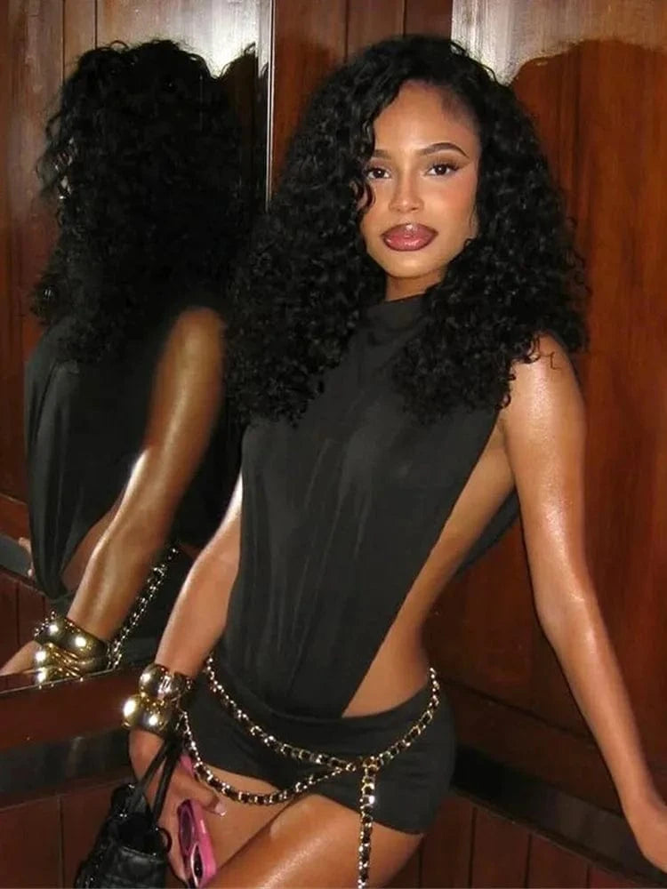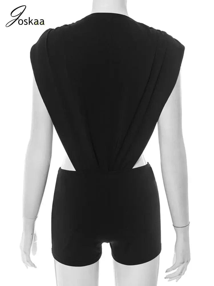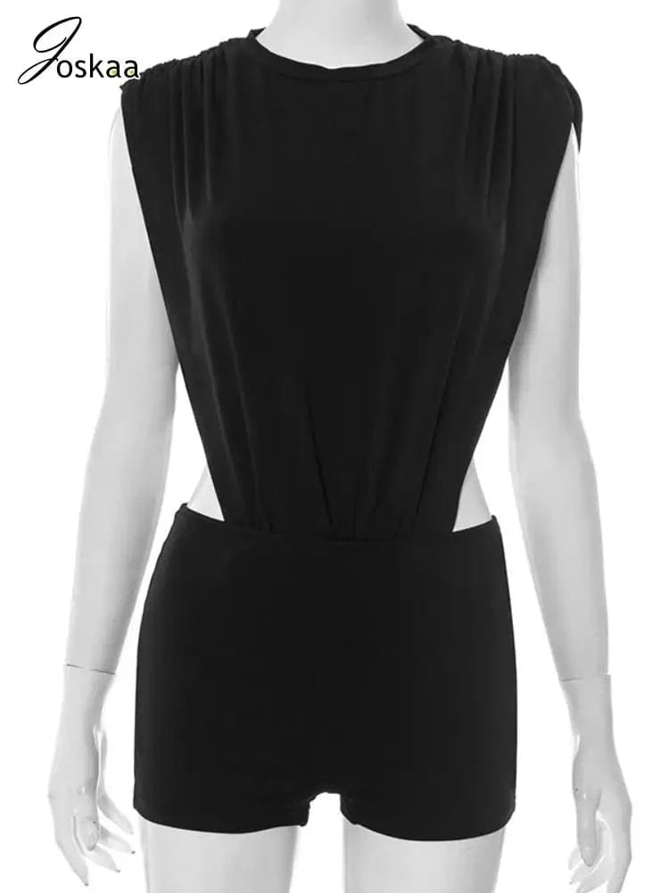 Joskaa 2025 Women's Black Two Piece Set Sexy Crew Neck Sleeveless Side Cutout Bodysuits and Bodycon Shorts Suits Y2K Streetwear