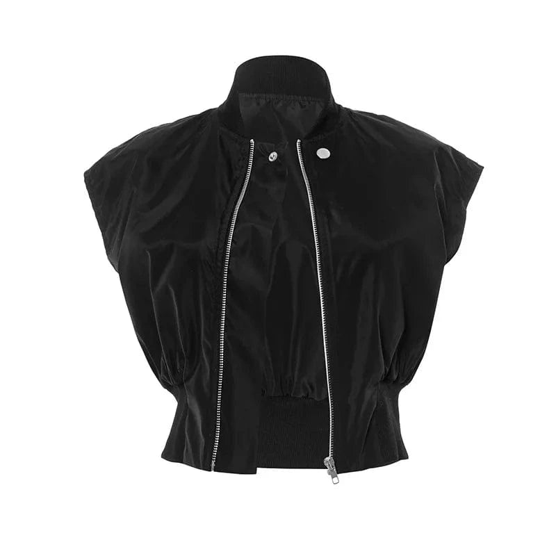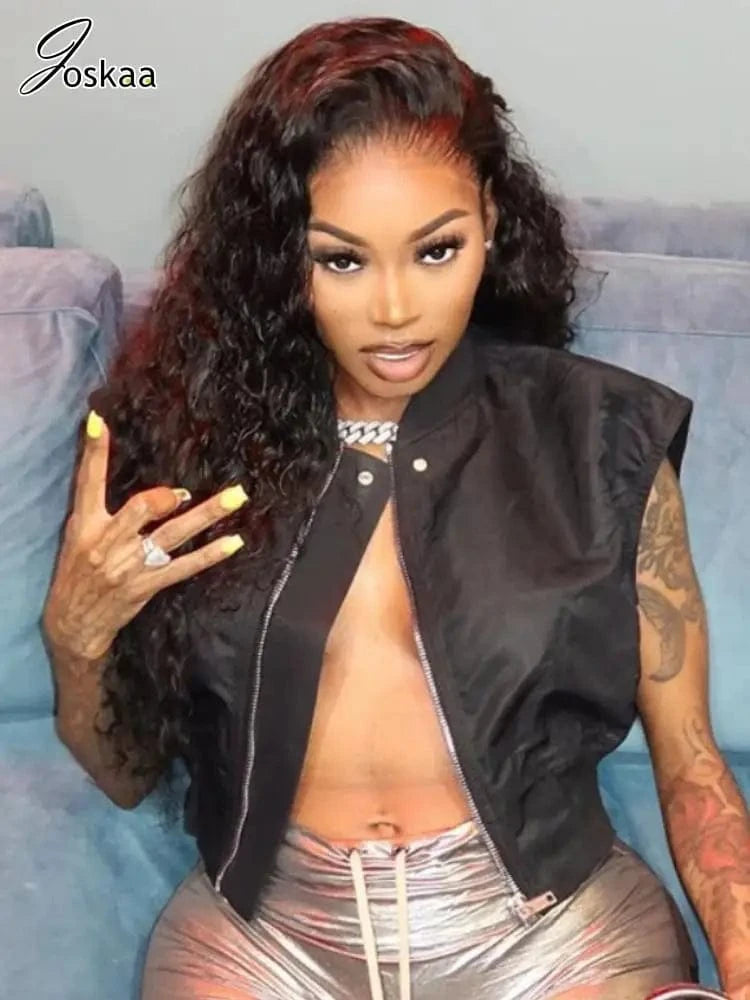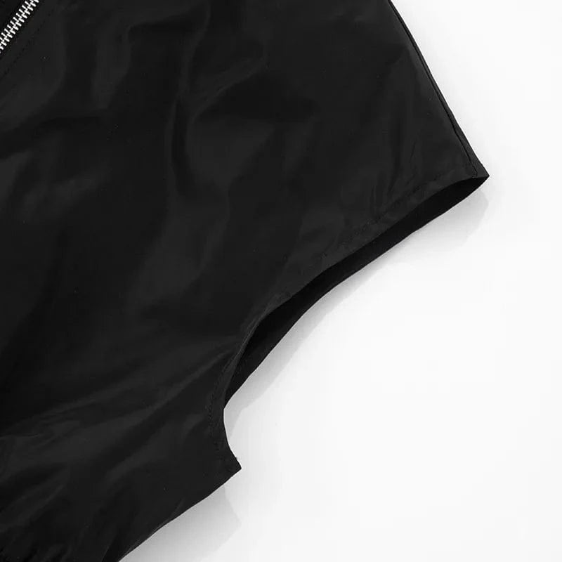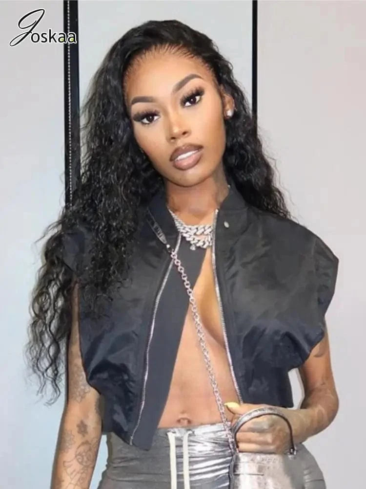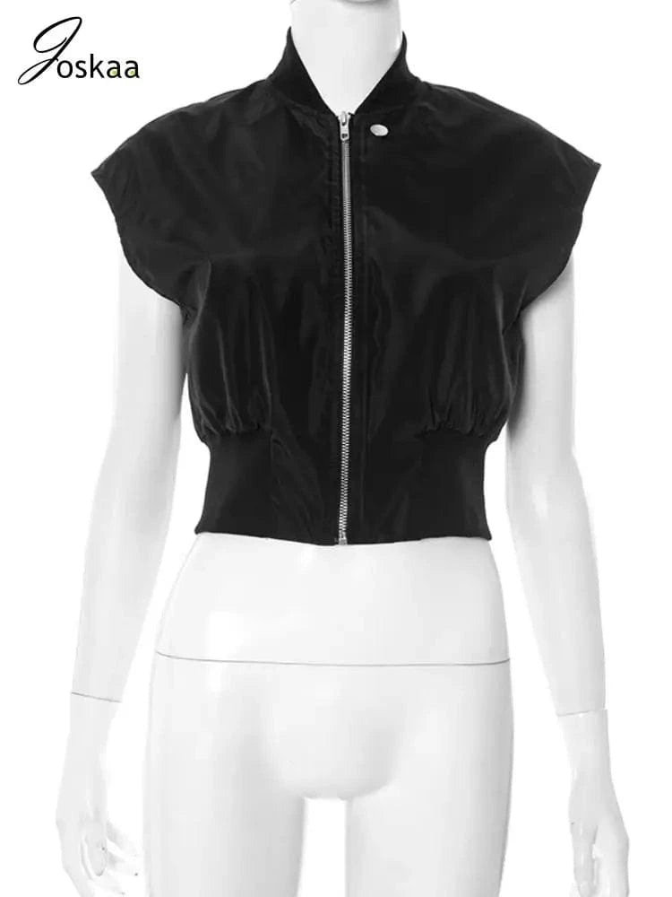 Joskaa Casual Black Cardigan Tops Women Hipster O-Neck Sleeveless Zipper Vests Jackets 2025 Summer Outerwear Y2K Streetwear