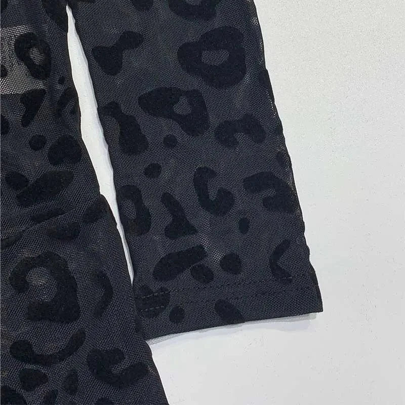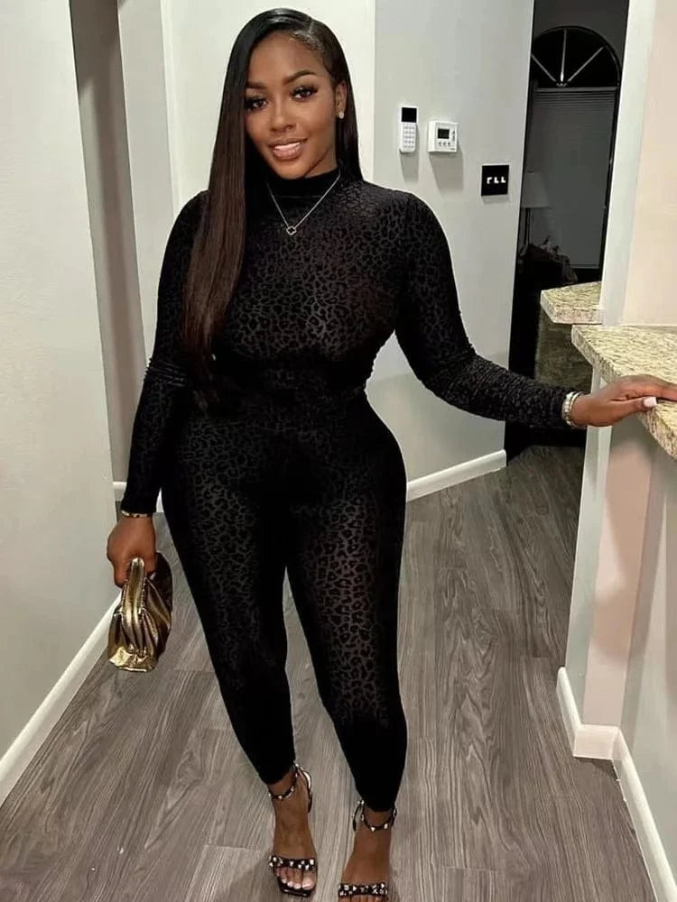 Joskaa Sexy Mesh Flocking Black Jumpsuit Women Stunning See Through Long Sleeve Skinny One Piece Overalls 2024 Night Club Outfit