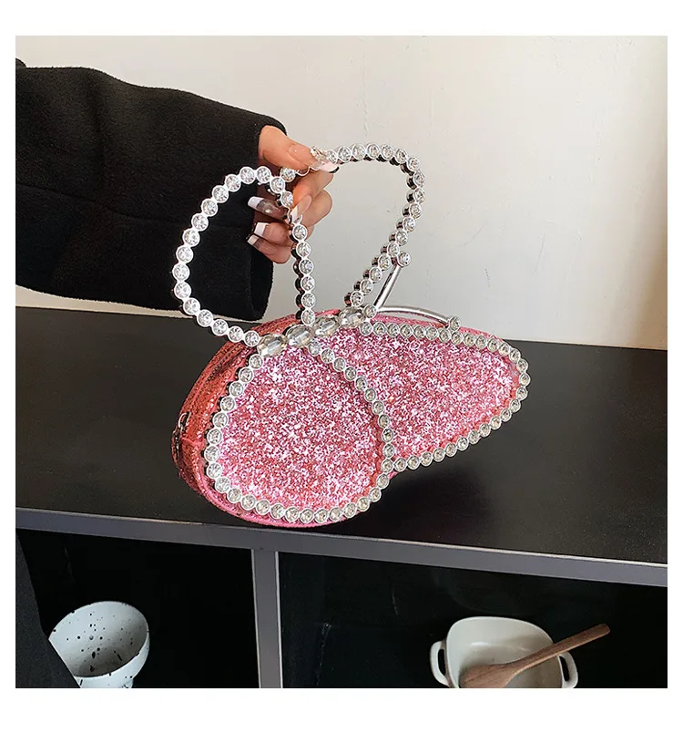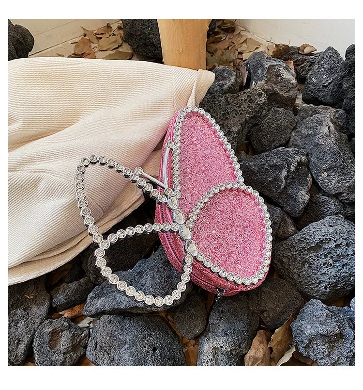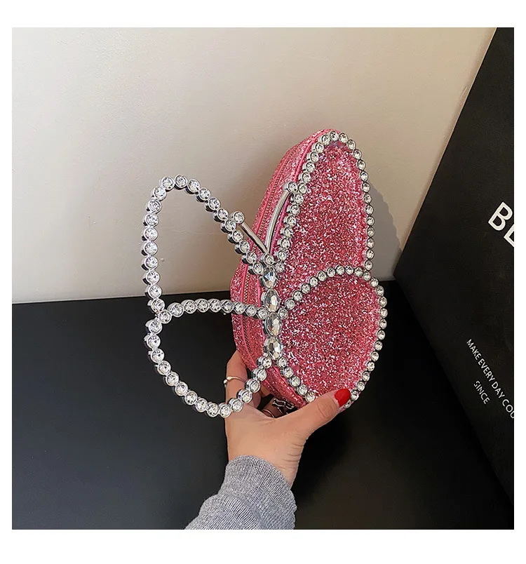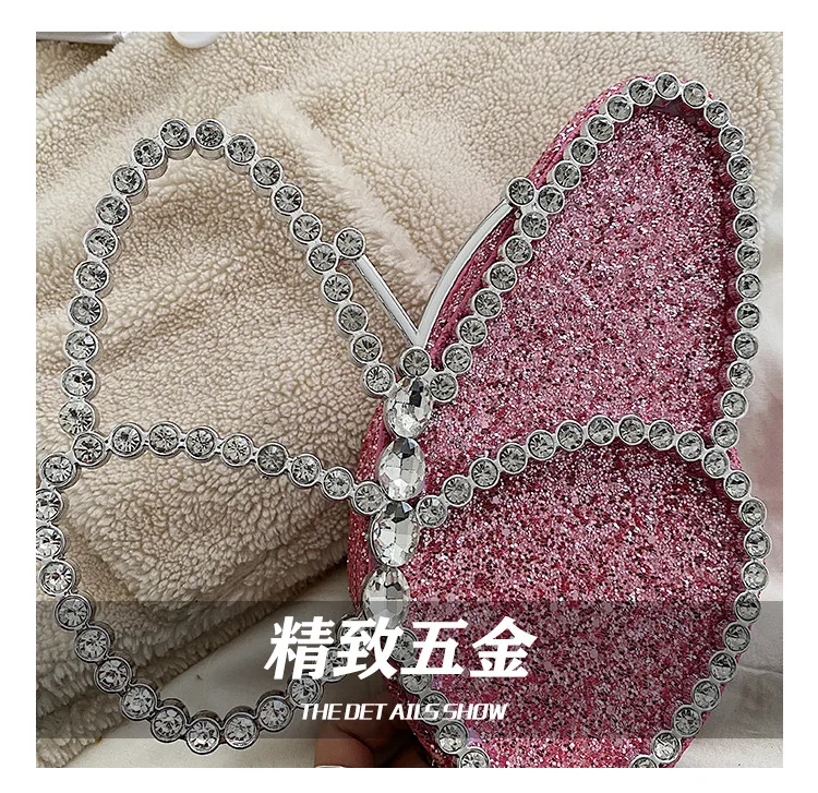 Ladies Butterfly Sequin Evening Clutch Bags Wedding Party Women Designer Metallic Handle Crystal Rhinestone Purses And Handbags