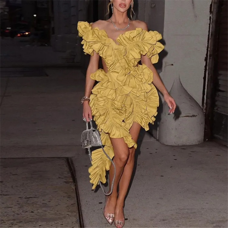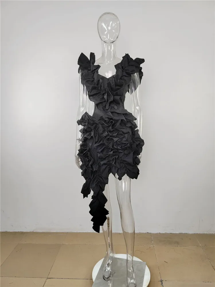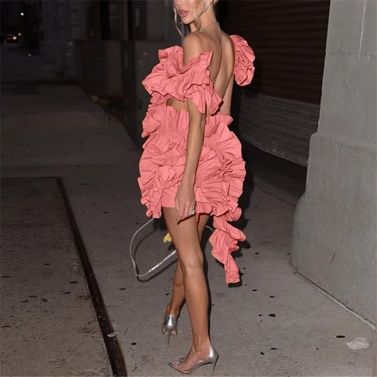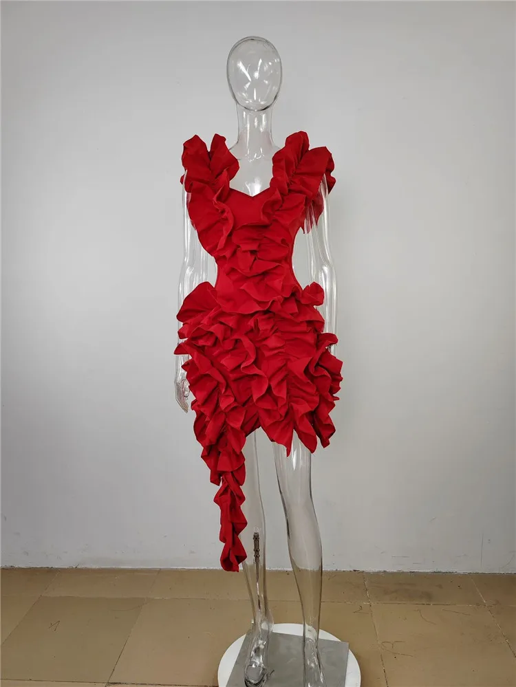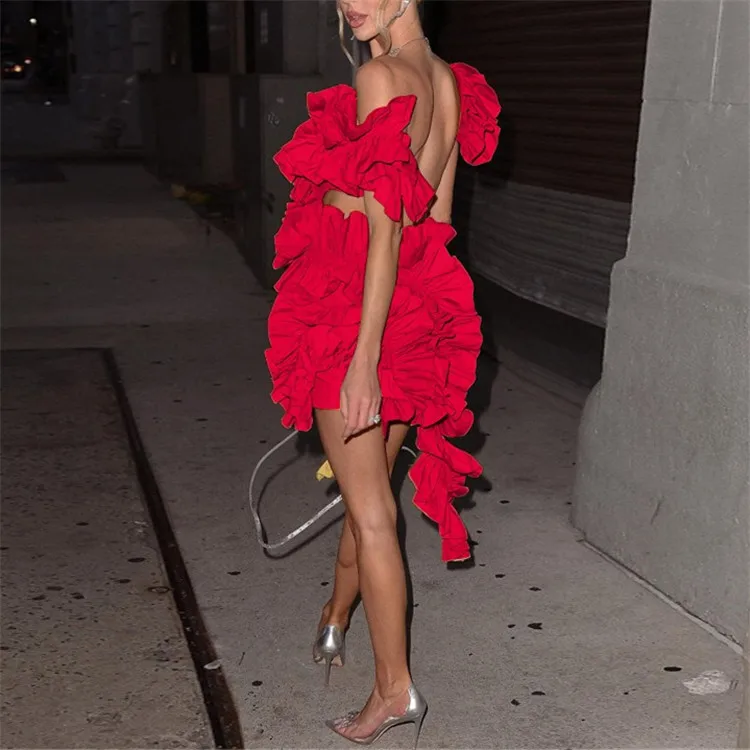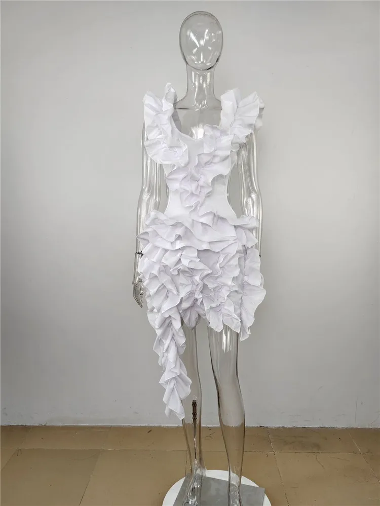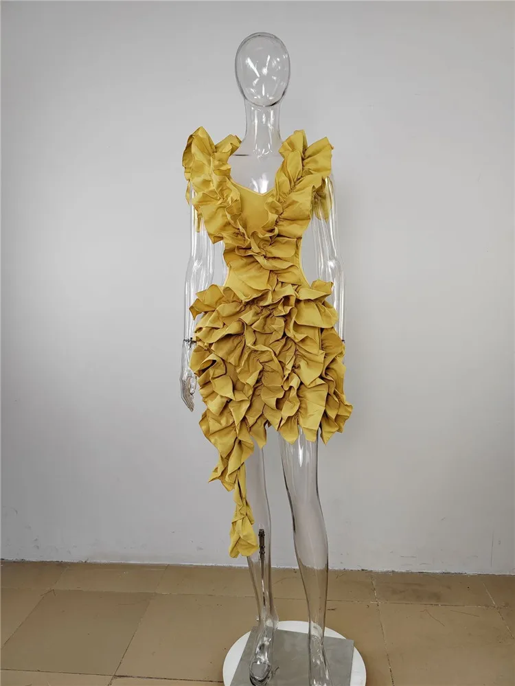 Ladies Spring Sleeveless Backless V-Neck Ruffle New Fashion Mini Dresses For Women Asymmetrical Ball Gown Evening Party Clubwear
