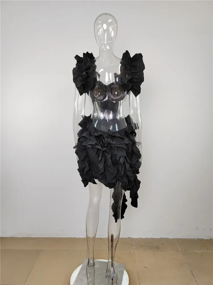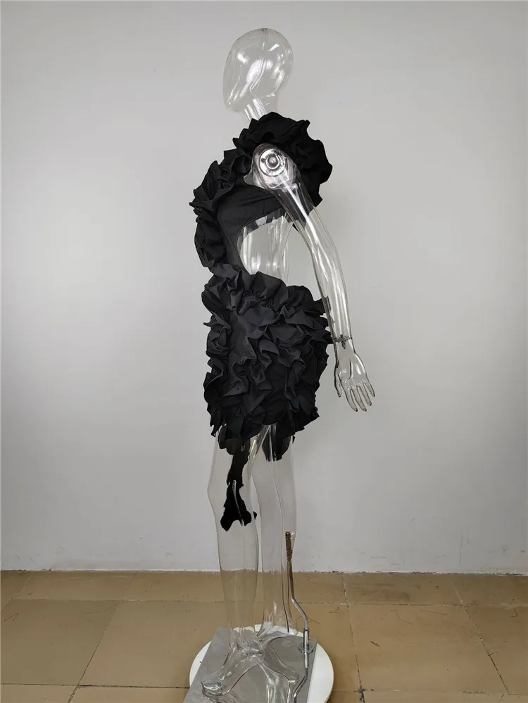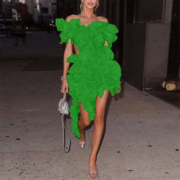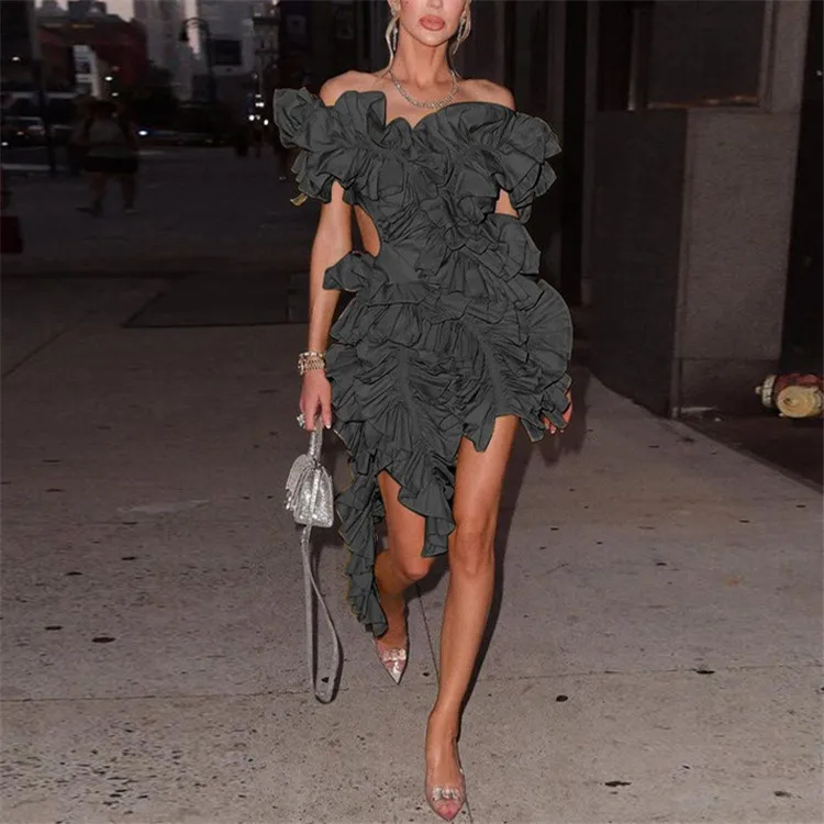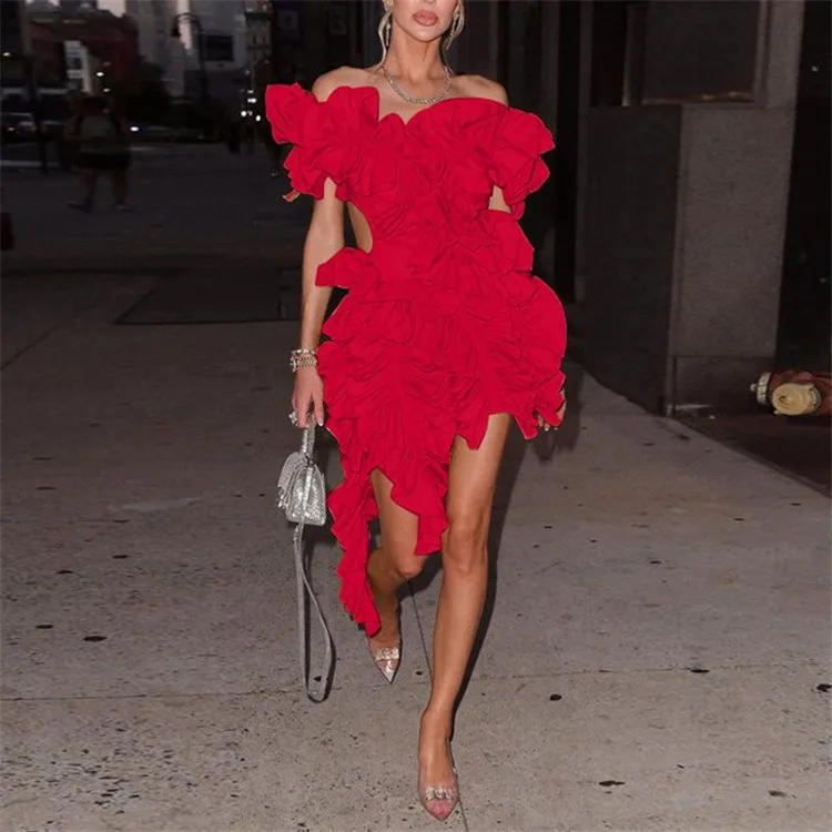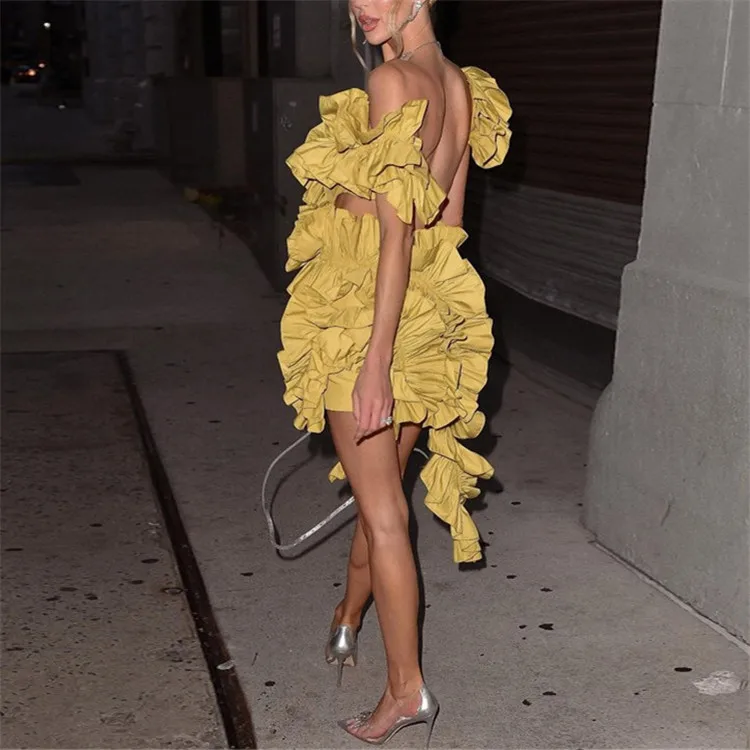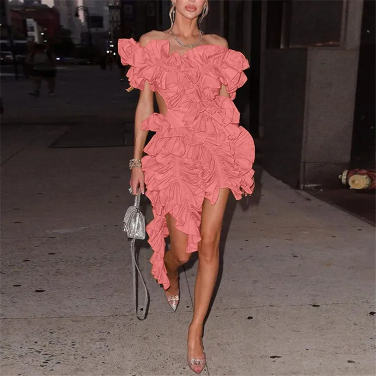 Ladies Spring Sleeveless Backless V-Neck Ruffle New Fashion Mini Dresses For Women Asymmetrical Ball Gown Evening Party Clubwear