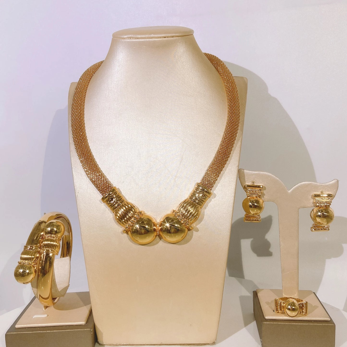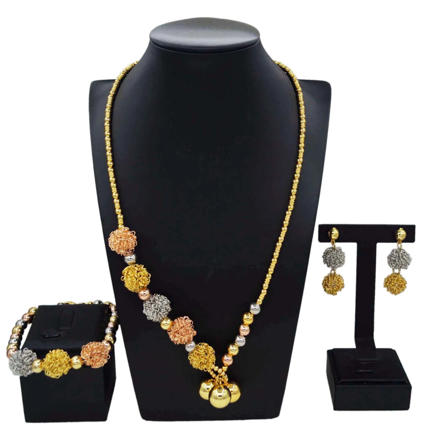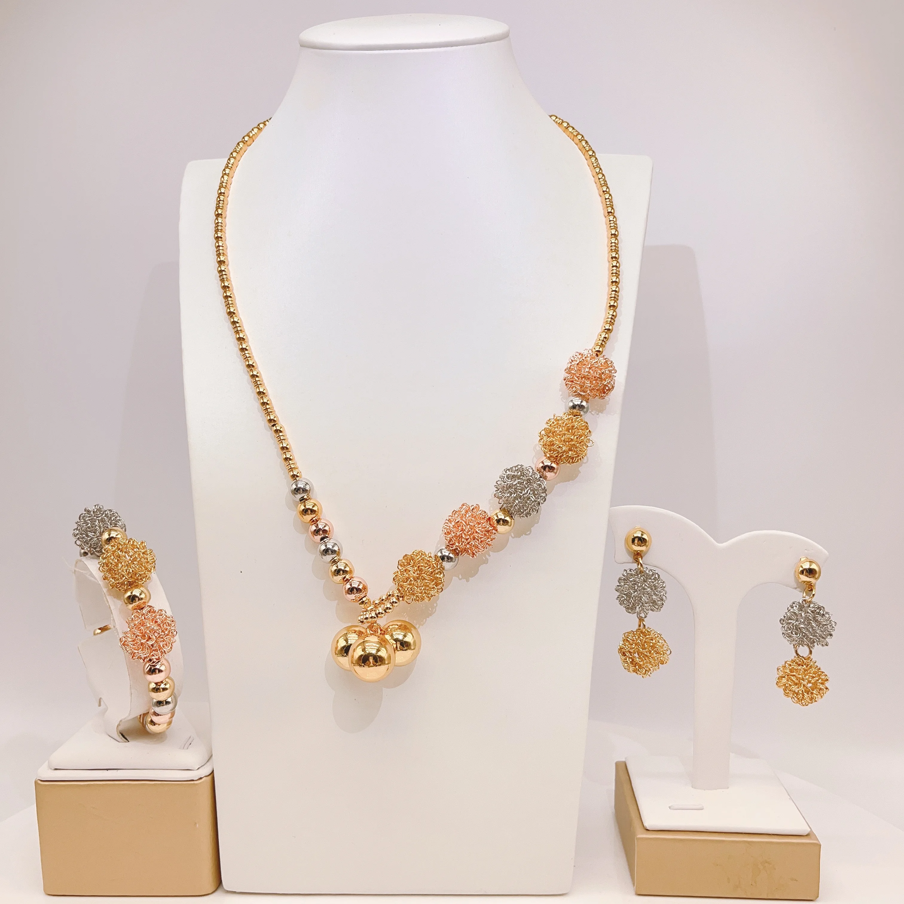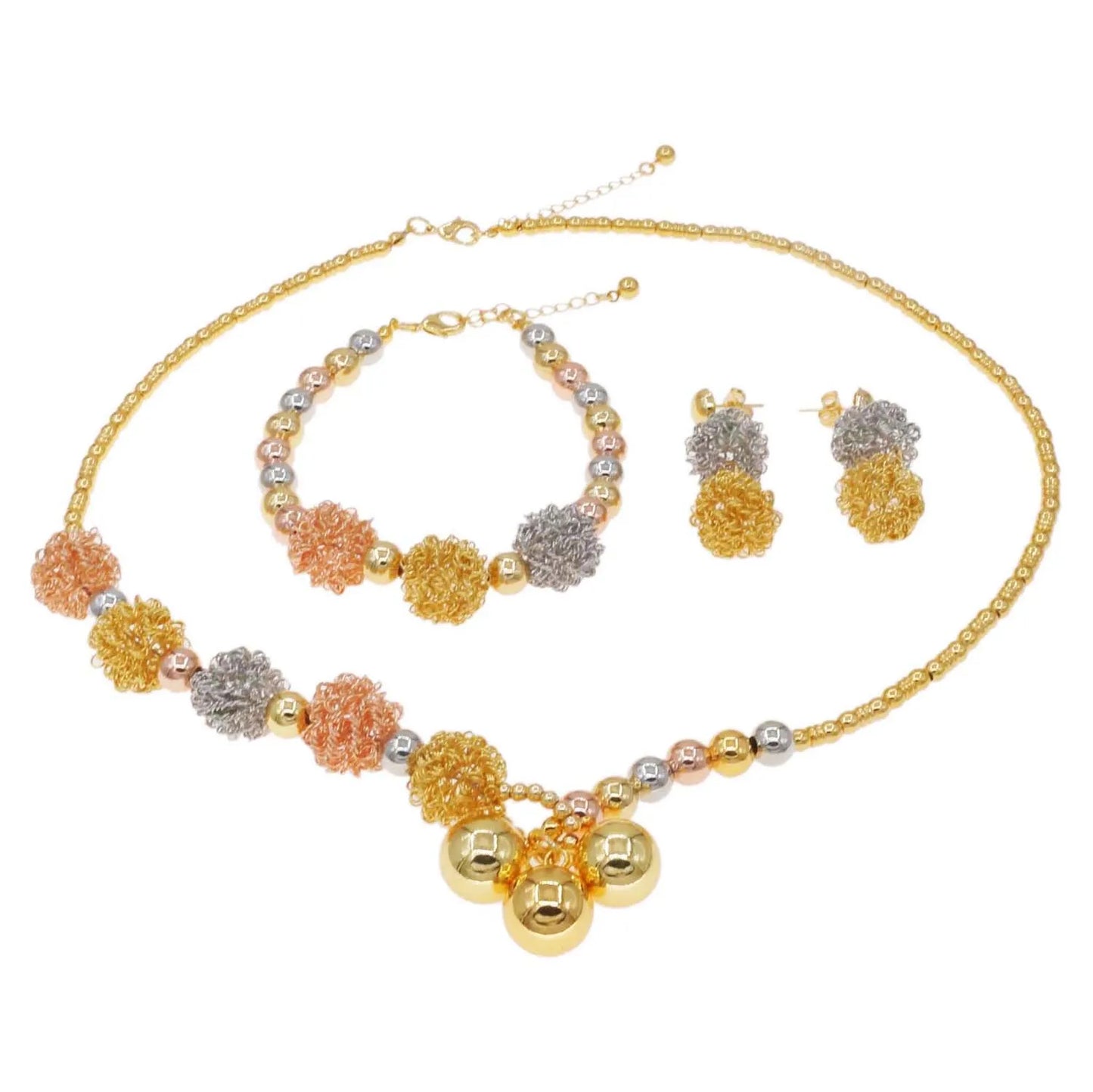 Latest Colorful Beads Copper Gold Plated Women Popular Jewels Fashion Wedding Party Gift Birthday Bridal Wholesale Jewelry set