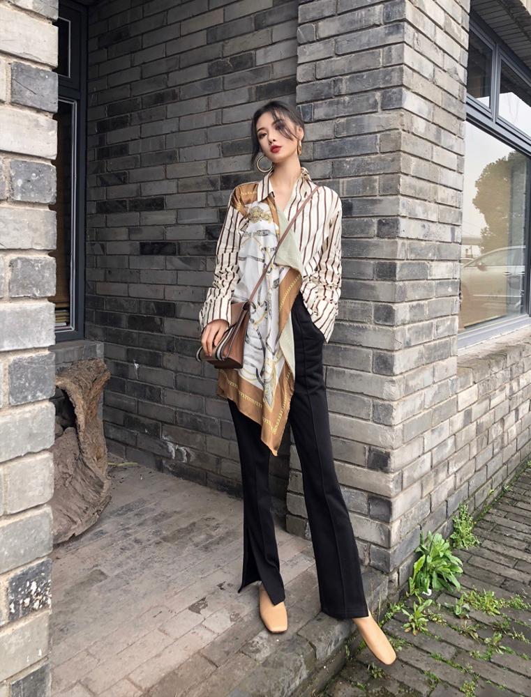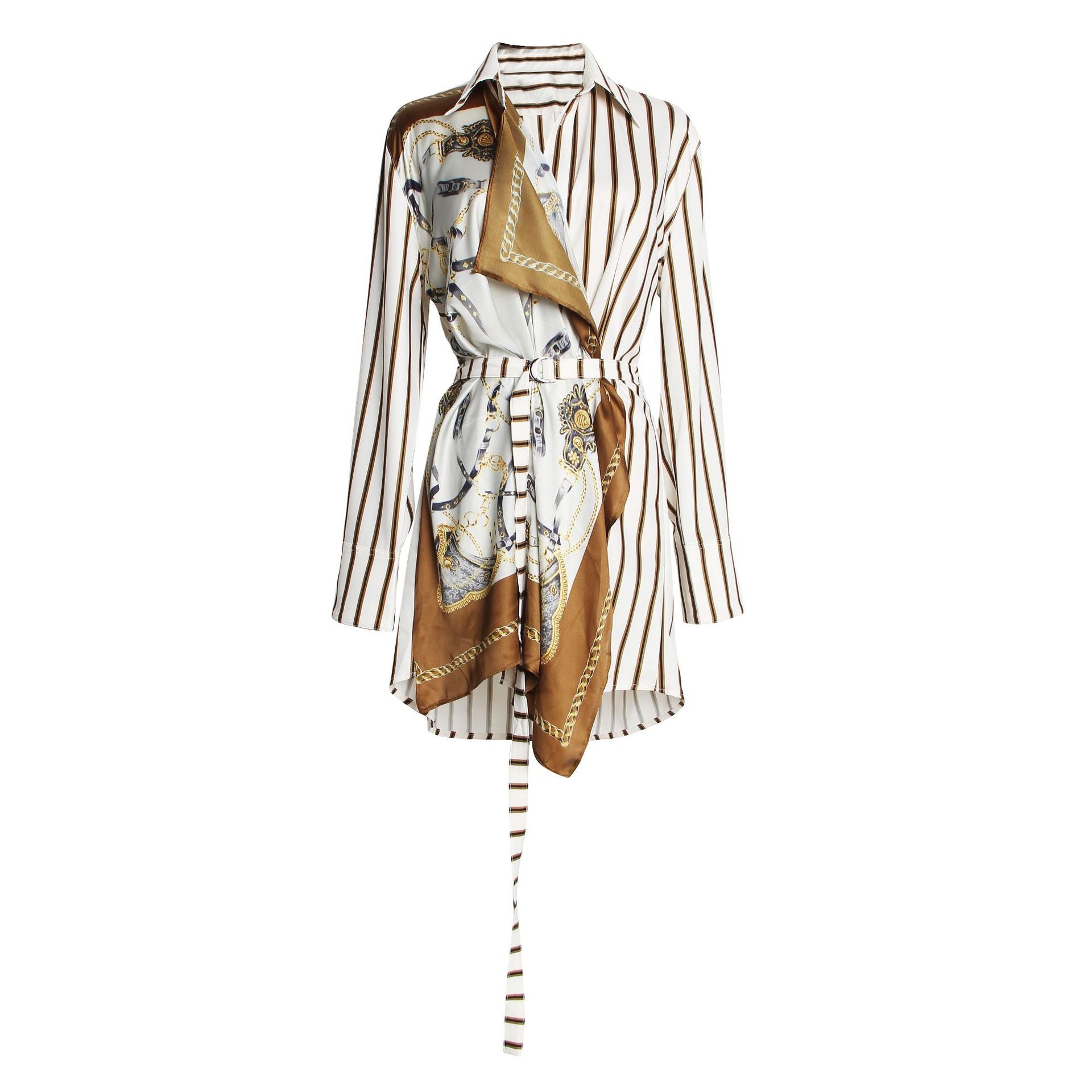Latest Design Fashion High Quality Women Clothing Stripe Floral Printed Patchwork Casual Long Sleeve Blouse Shirt With Belt