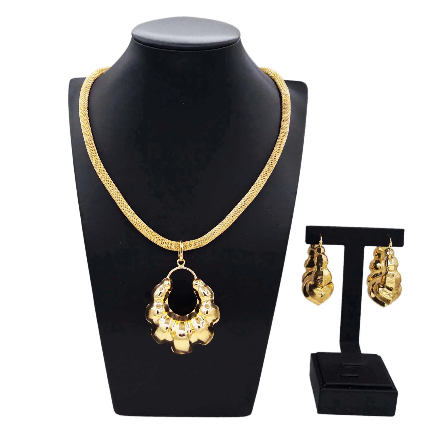 Latest Fashion Popular Gold Plated Wedding Gift Jewelry set Birthday Bridal 2 pieces Women Necklace Earring Hot sale Jewels