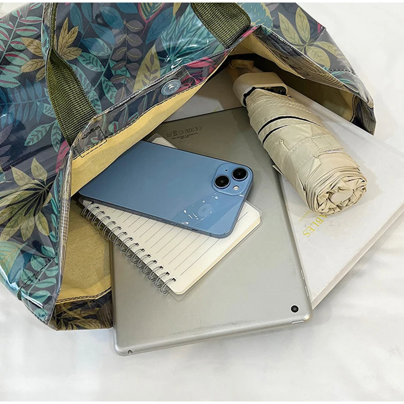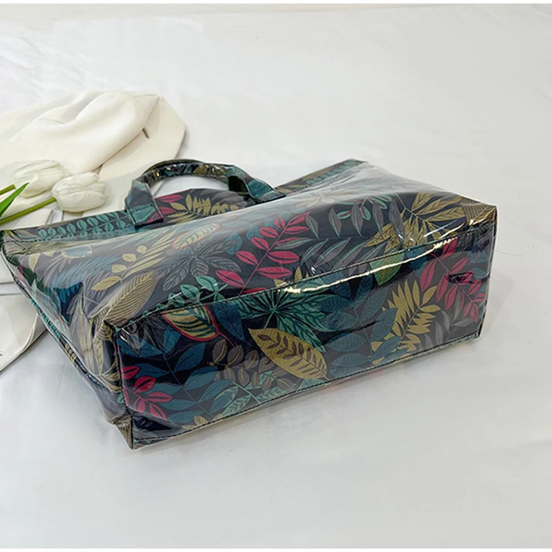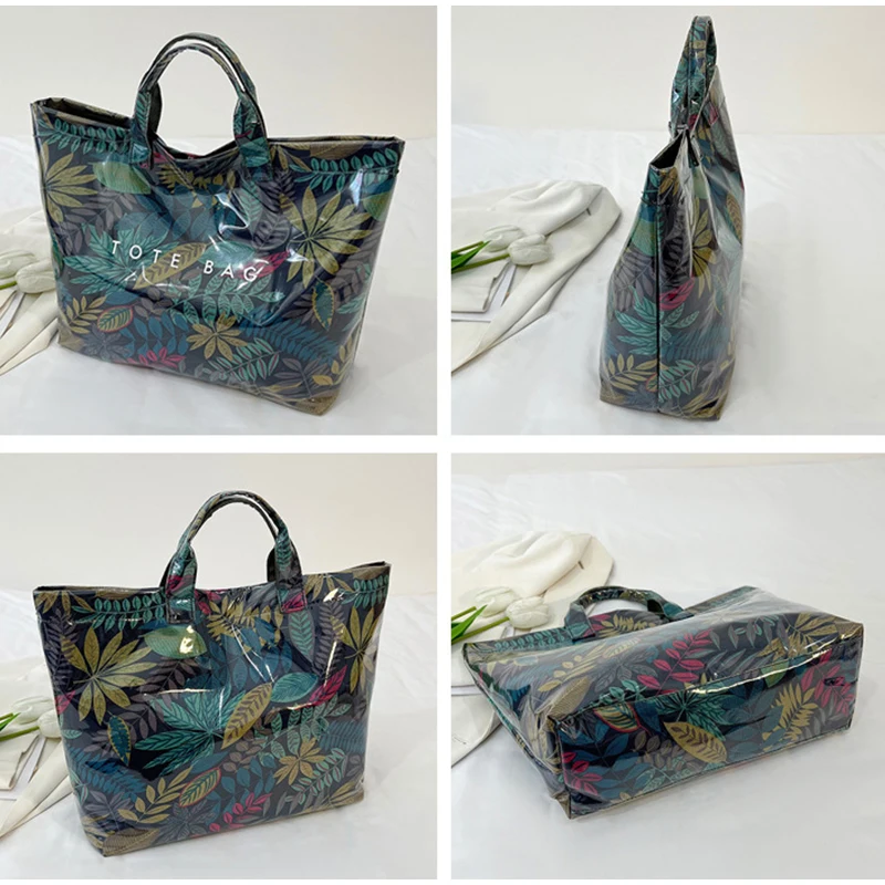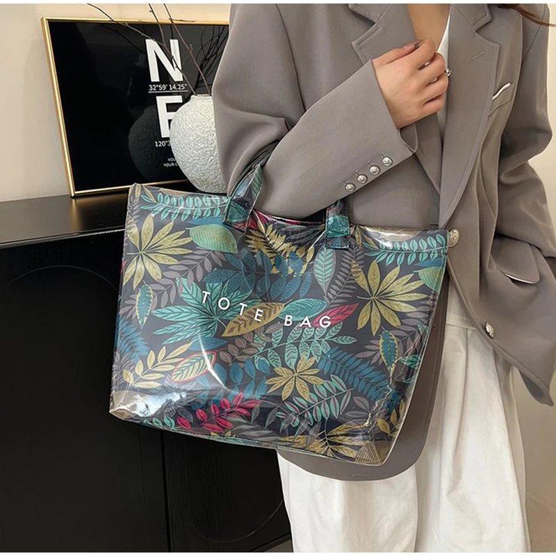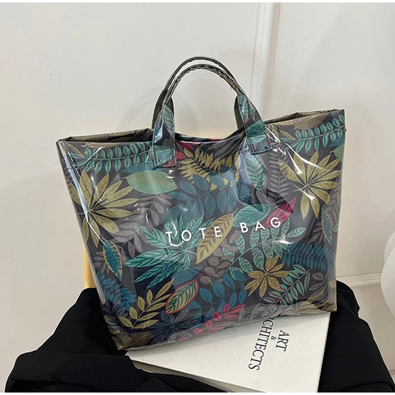 Leaf Print Handbag Pvc Fashion Transparent Waterproof Fashion High-end Shoulder Bag Large Capacity Commuter Tote Bag Shop Bag