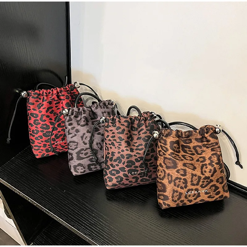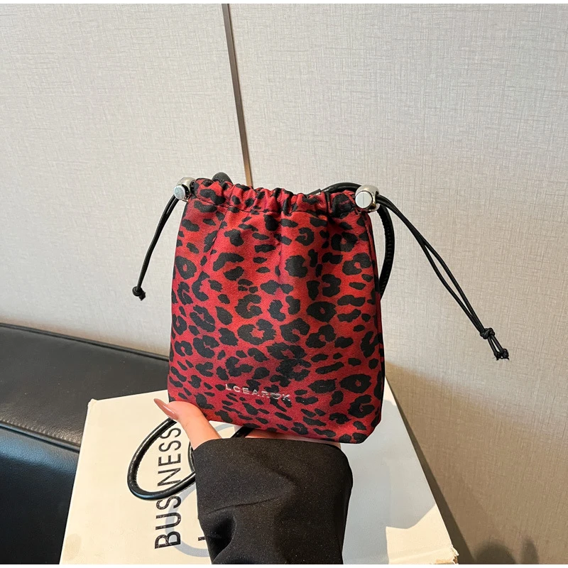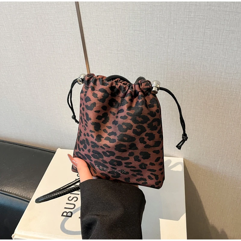 Leopard Print Nylon Drawstring Crossbody Bag New Niche Design Fashion Versatile Women's Mobile Phone Bag Exquisite Shoulder Bag