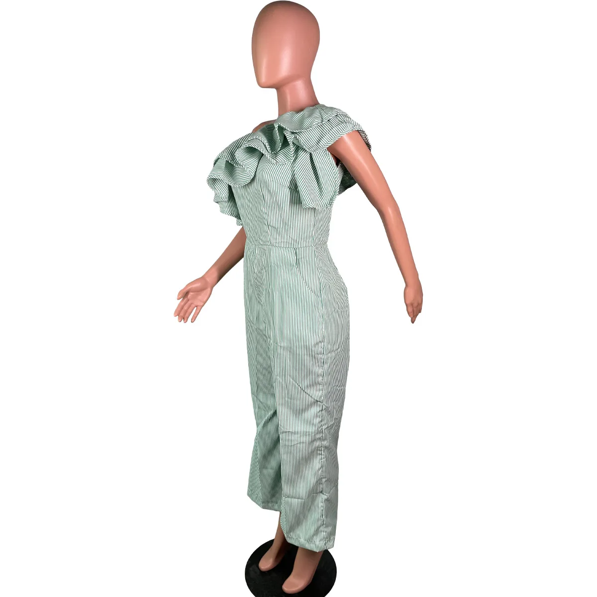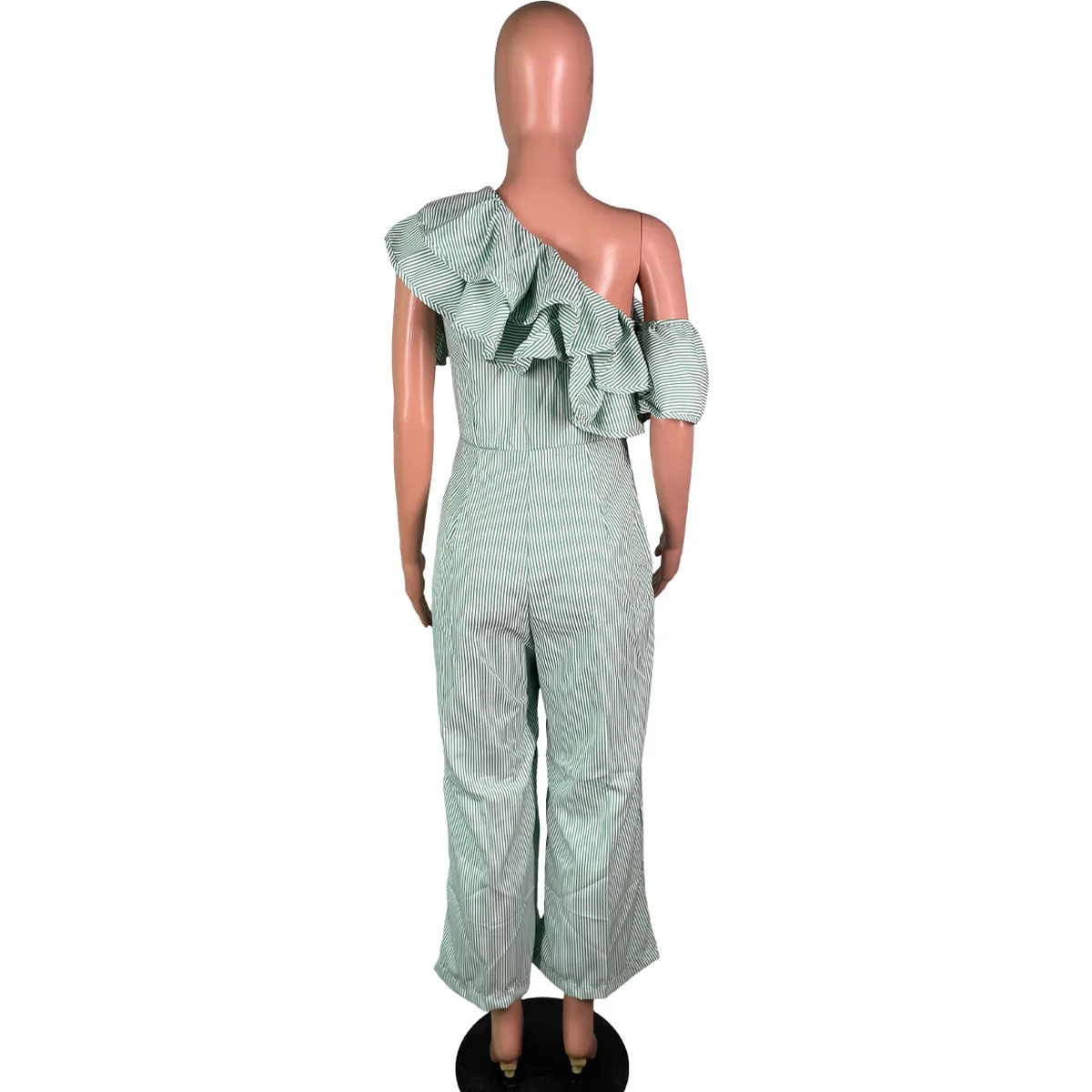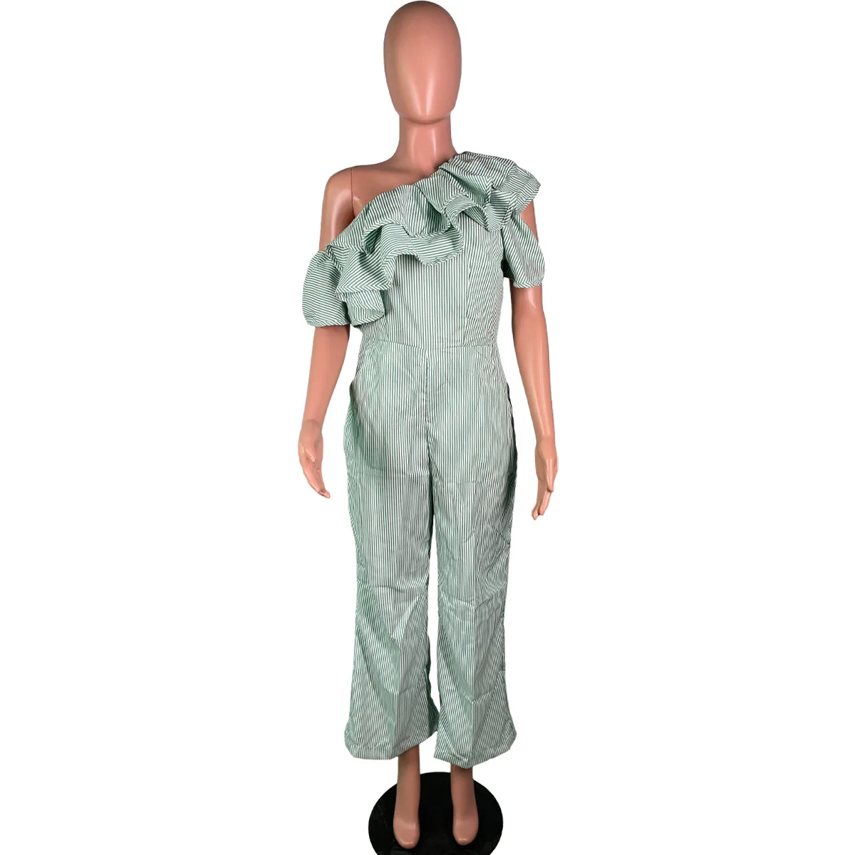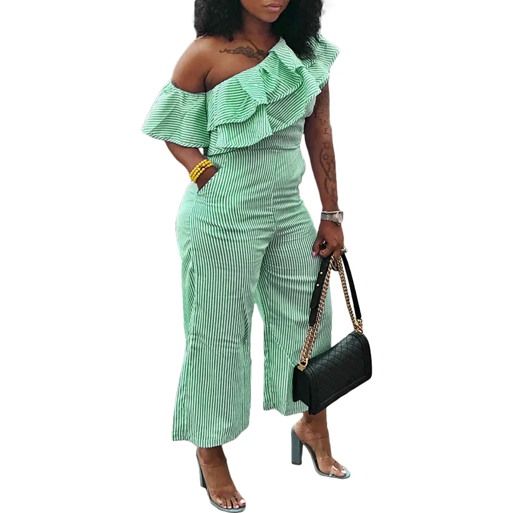 Liu Ming African Fashion 2024 Trending Women Sexy Ruffle Patchwork One Shoulder Striped Print Playsuit Jumpsuits