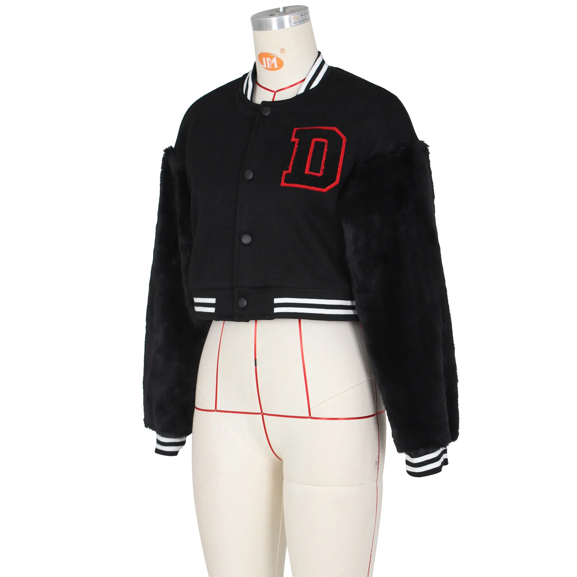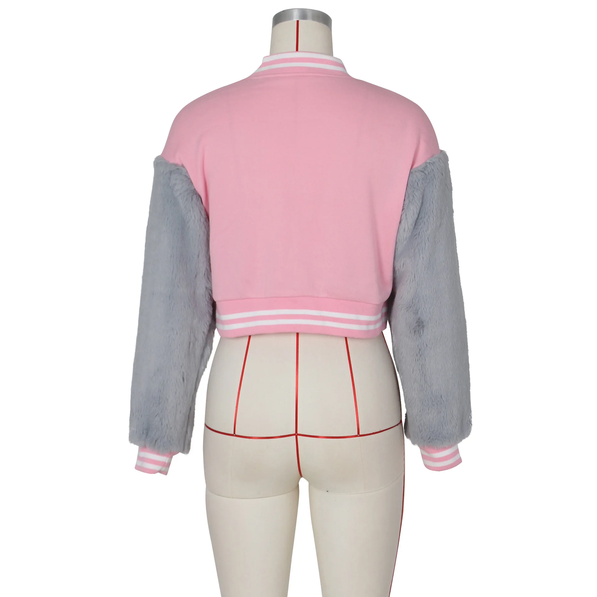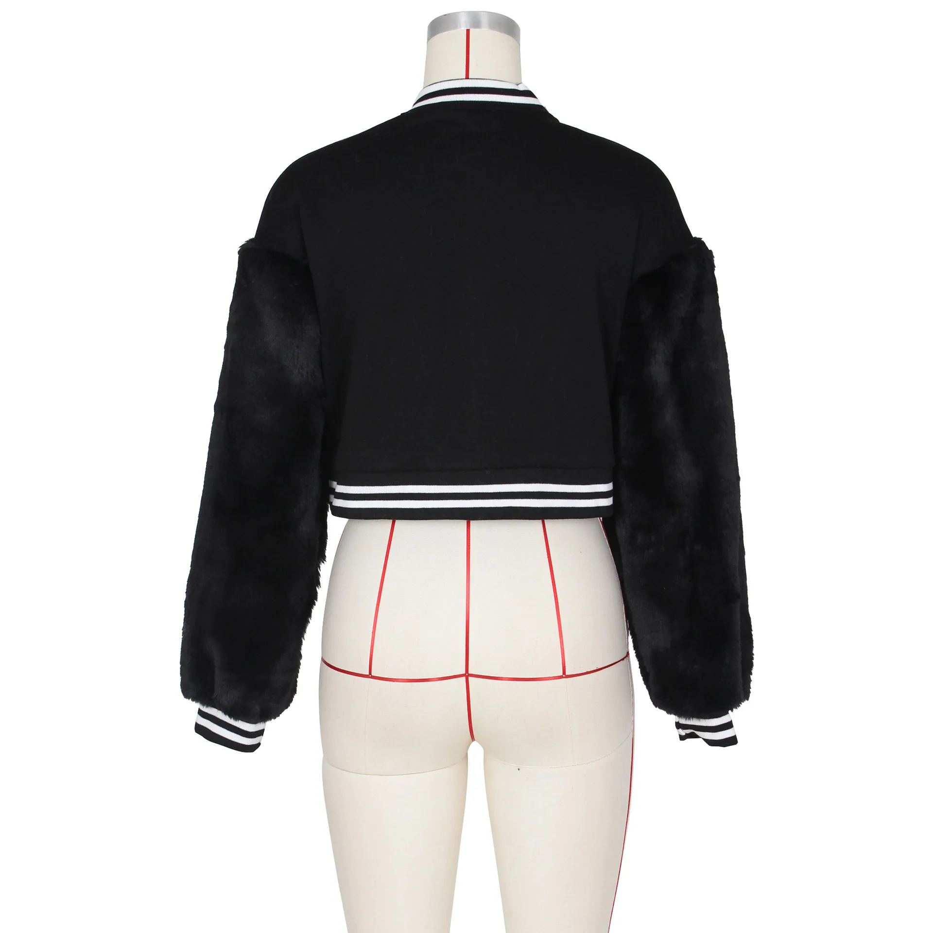 Liu Ming New Fashion Women Casual Patchwork Furry Sleeve Sportswear Baseball Winter Jackets Coats