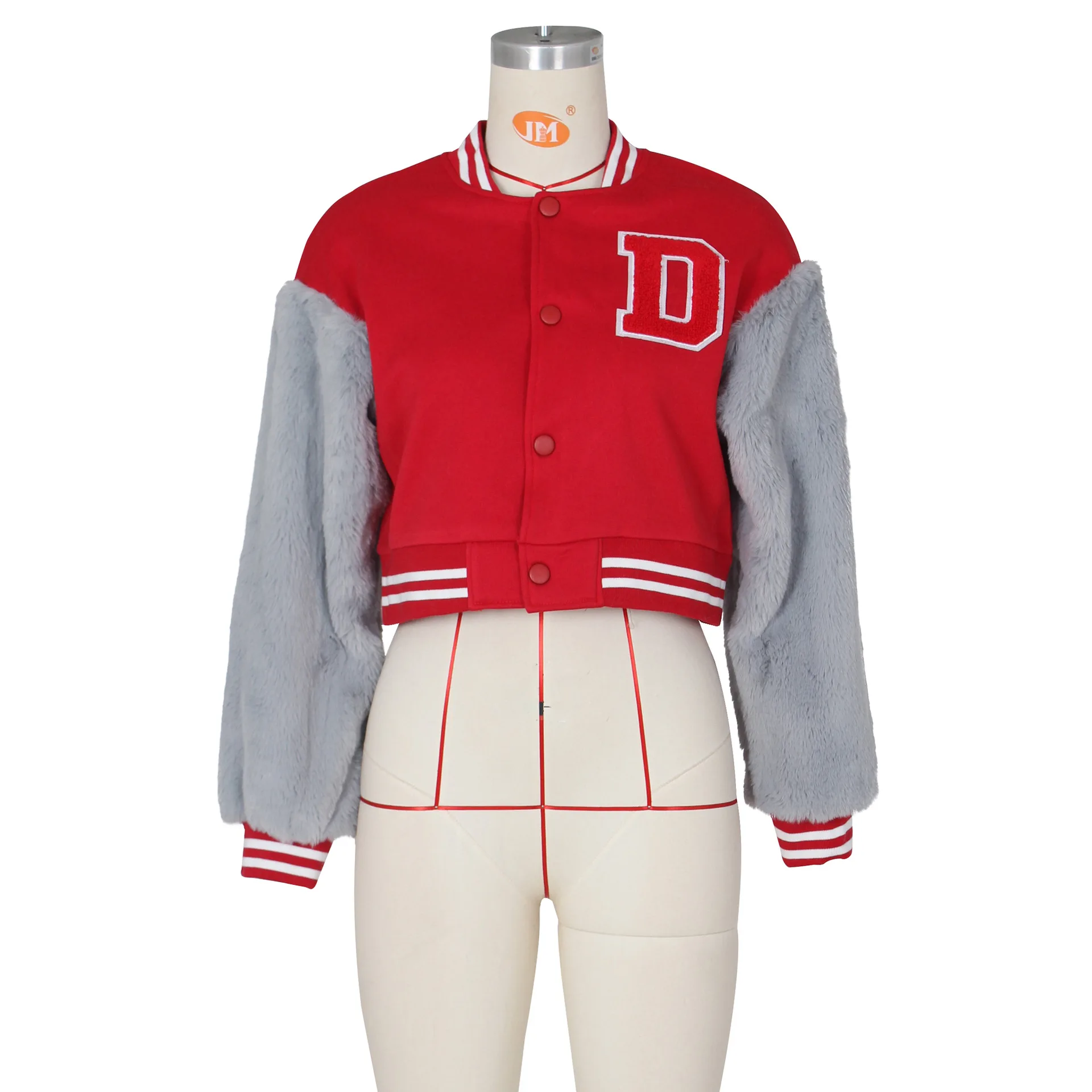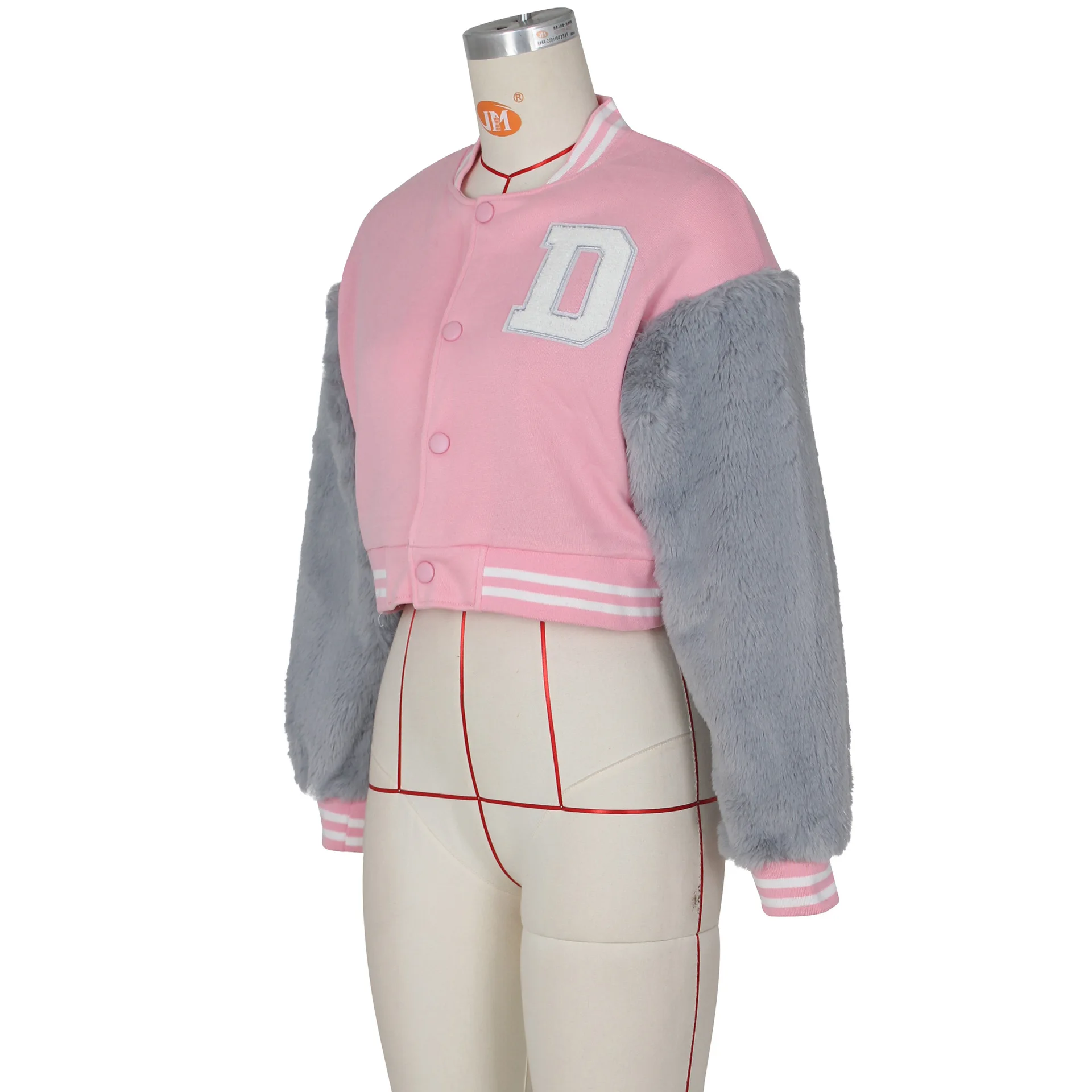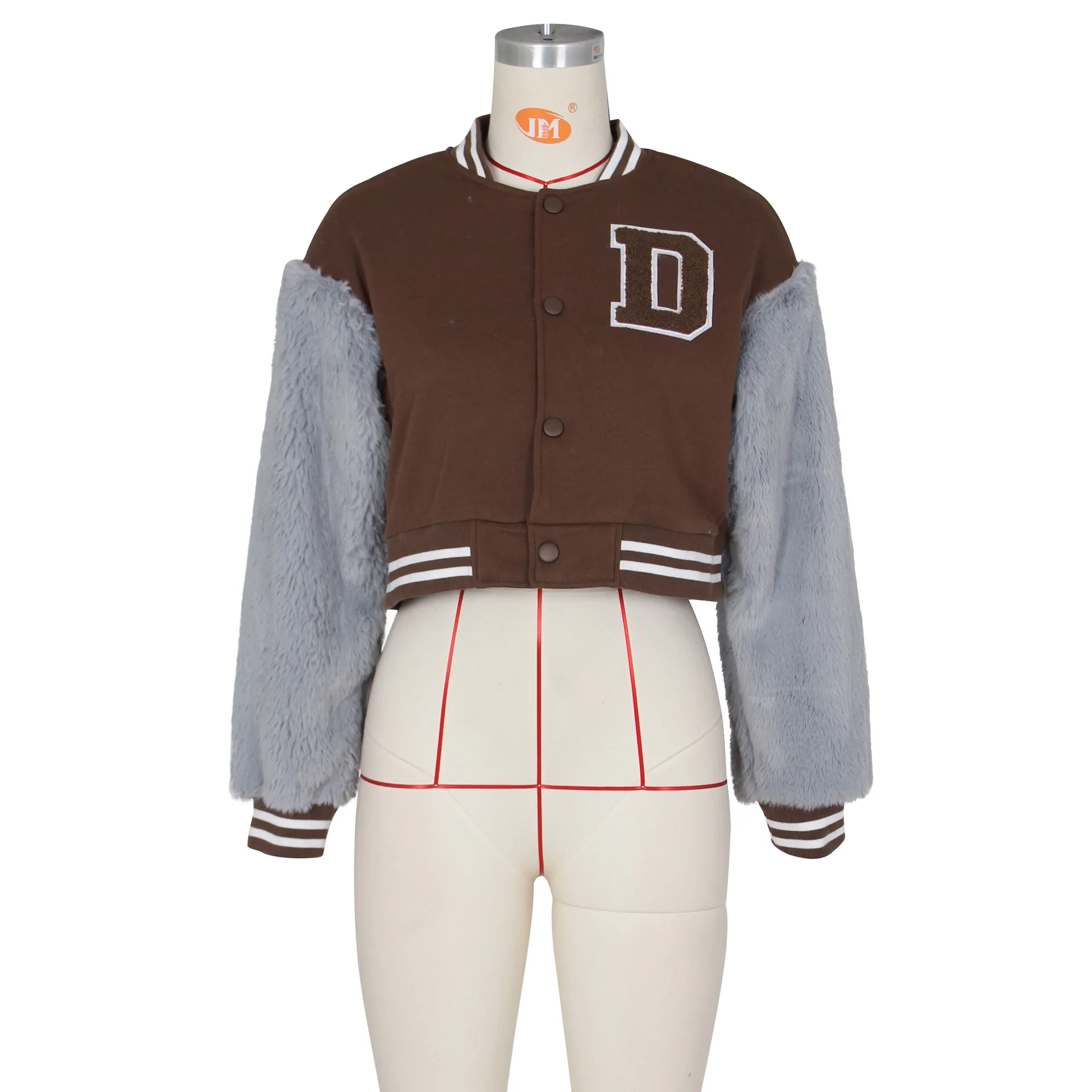Liu Ming New Fashion Women Casual Patchwork Furry Sleeve Sportswear Baseball Winter Jackets Coats