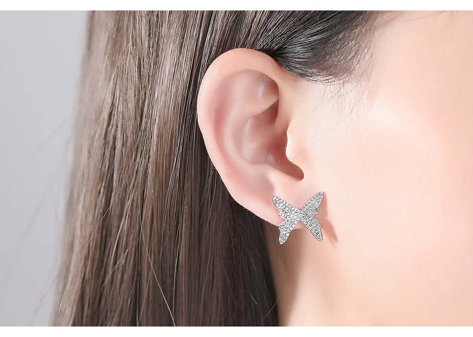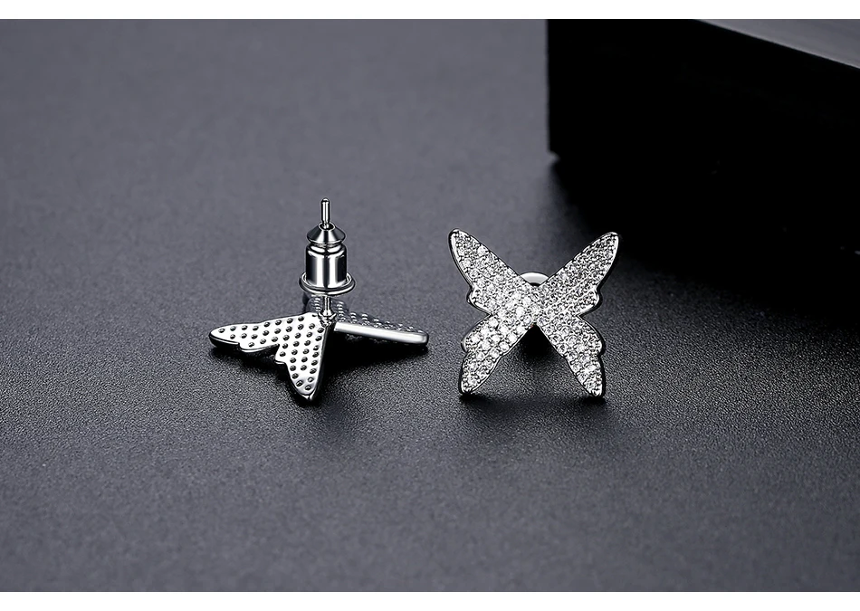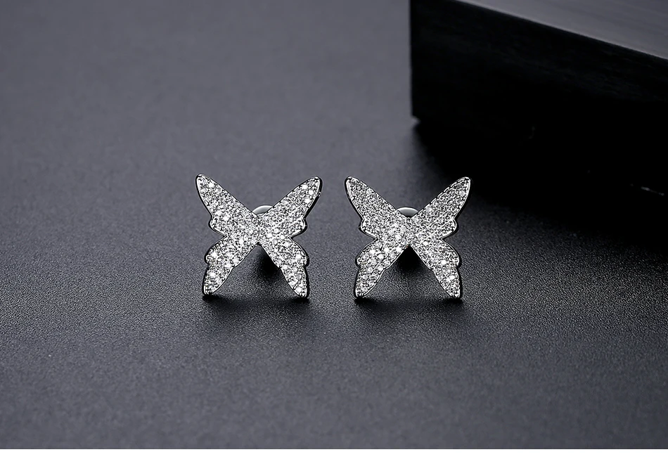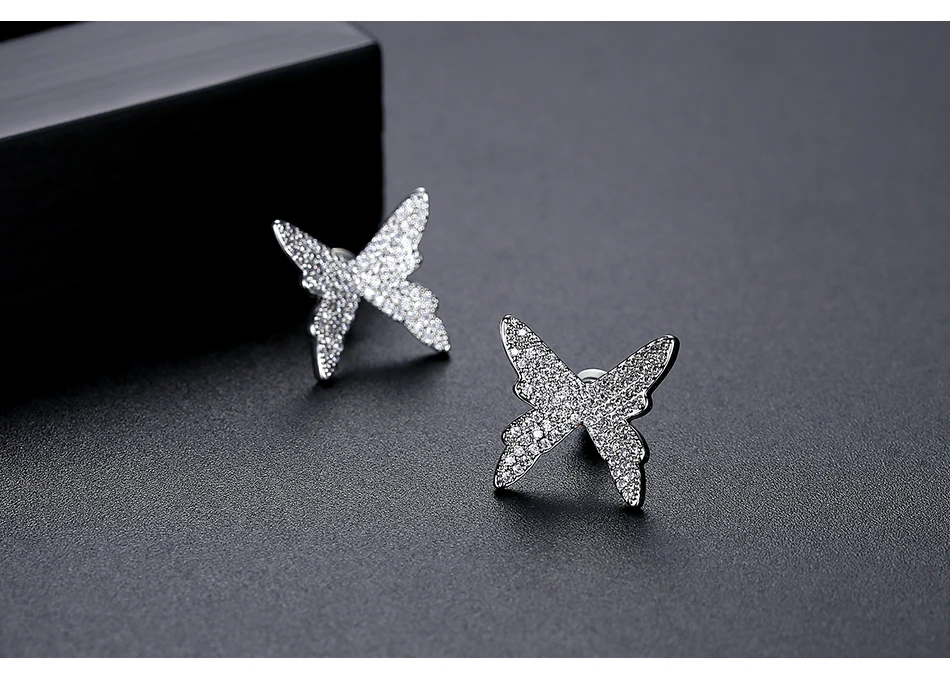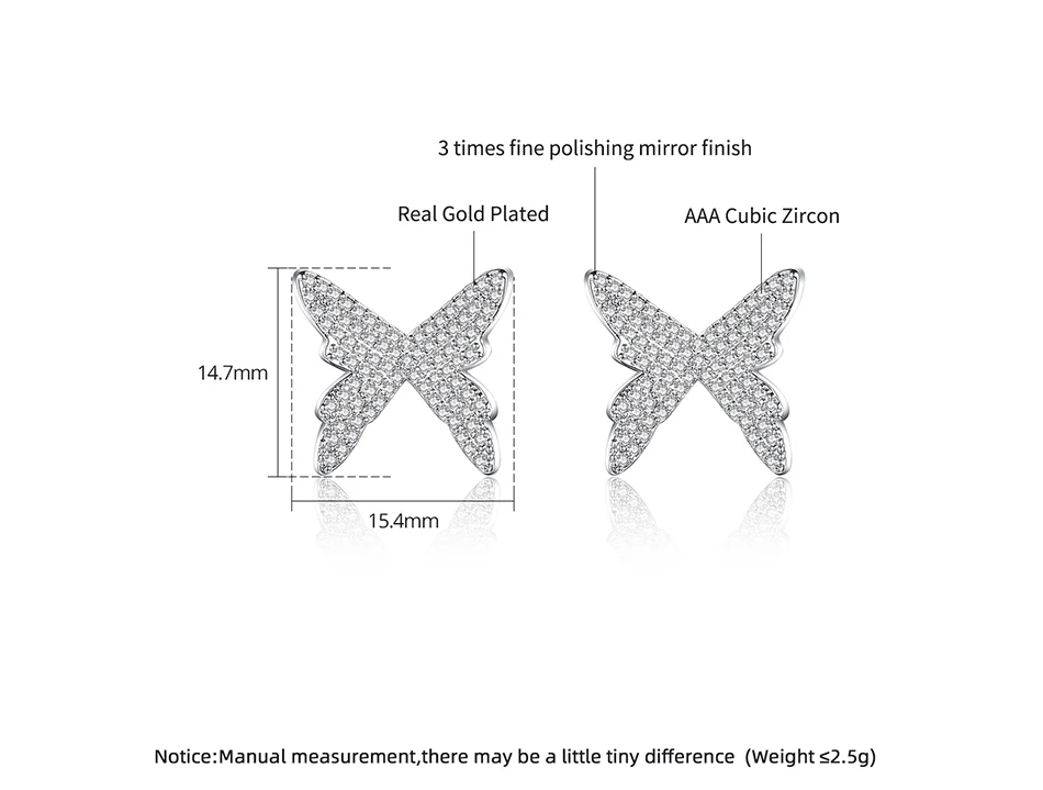 LUOTEEMI Butterfly Vintage Custom Statement Woman Micro Diamond Bohemian Cubic Zirconia Large Earring Stud
