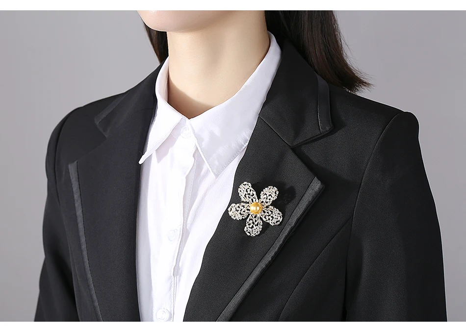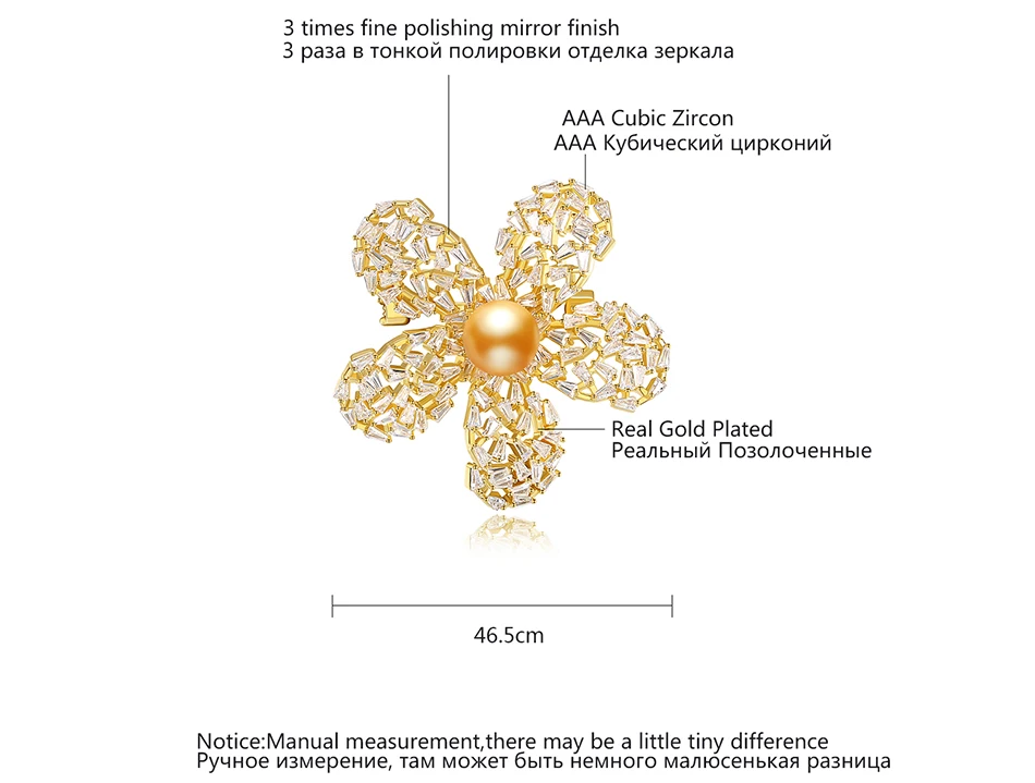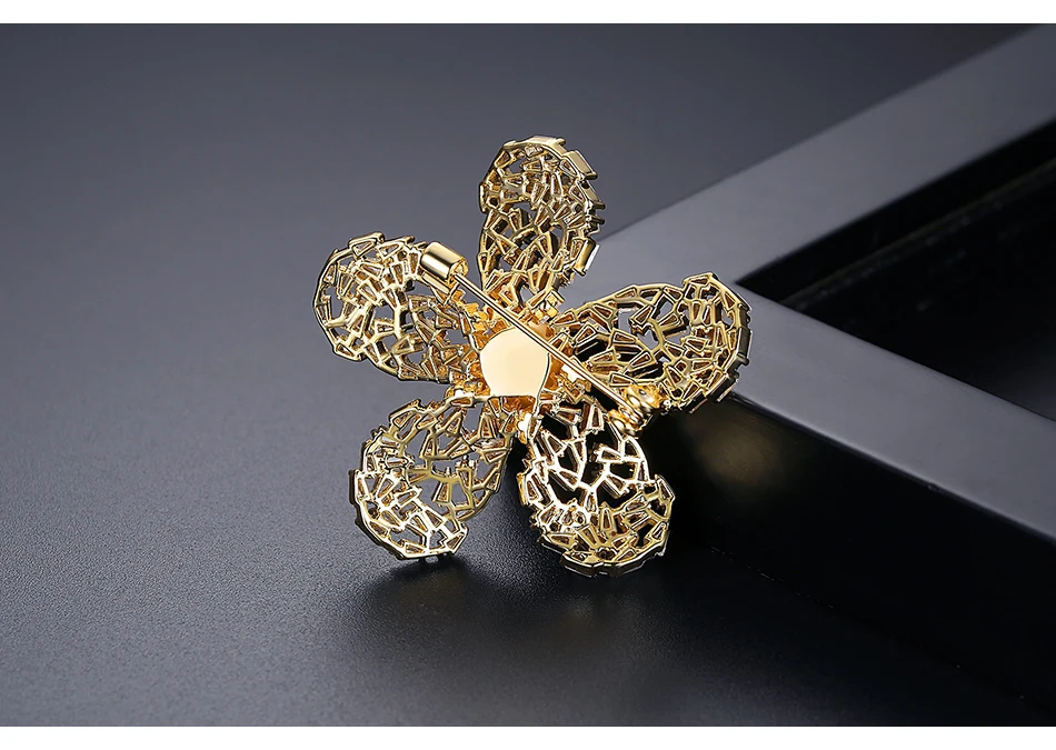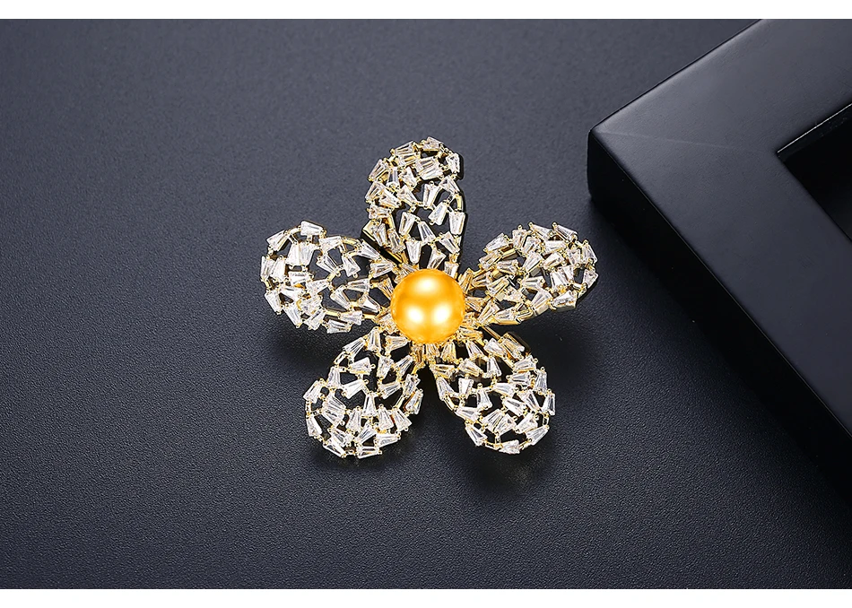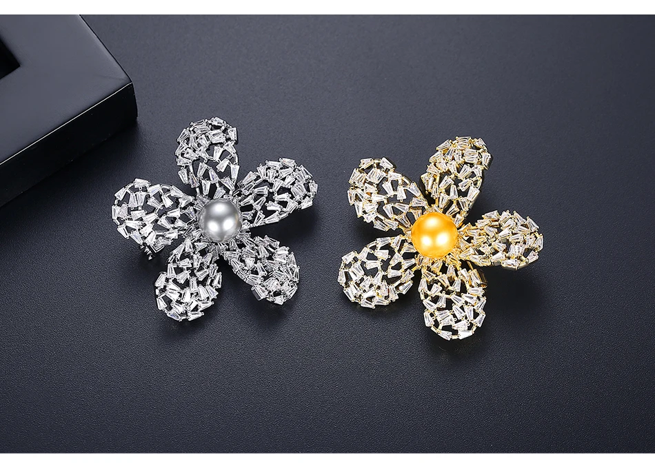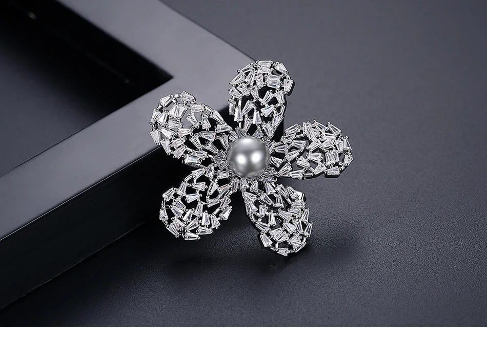 LUOTEEMI Fashion Women Jewelry Pearl & Rhinestone Cubic Zircon Flower Design Pearl Brooch Pin