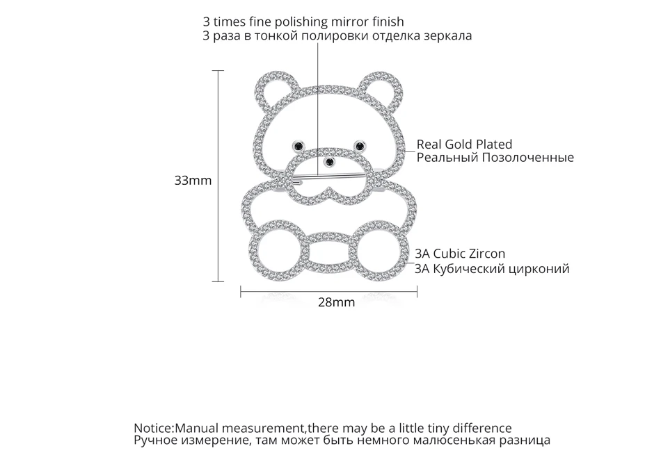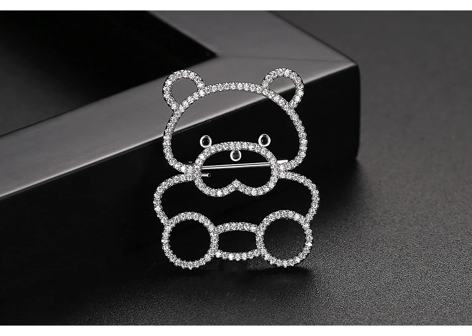 LUOTEEMI High Quality Brass Women Jewelry Fashion Bear Brooch Pin Tiny CZ Paved Animal Brooches