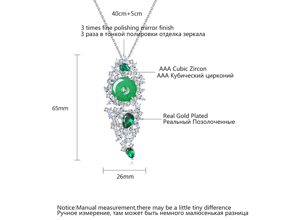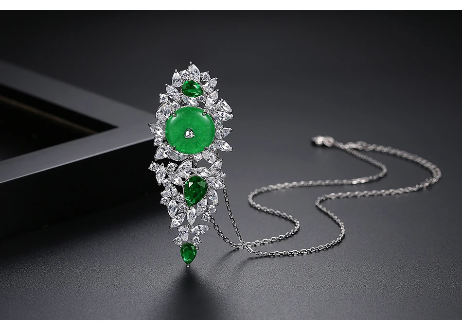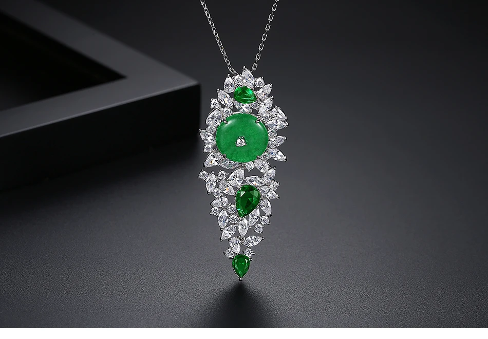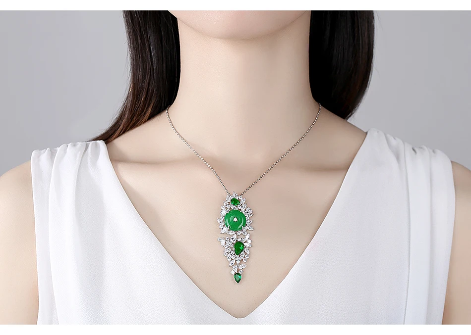 LUOTEEMI High Quality Emerald Jard Pendant Necklaces Green Gemstone Setting Whistle Shape for Women Wholesale