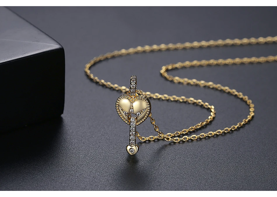 LUOTEEMI Luxury Flower Zircon Necklace Women CZ Stone Gold Plated Jewellery Pendant Necklaces