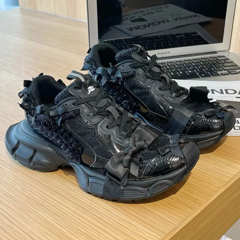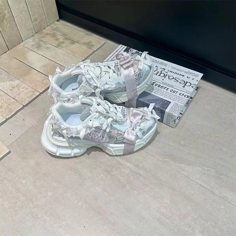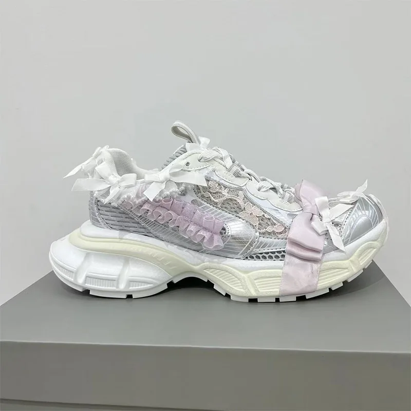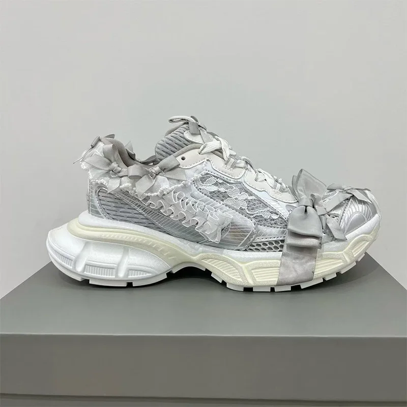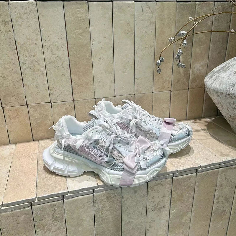 Luxury Brand Thick-soled Sports Shoes Women Bow Tie Casual Run Shoe Versatile Mesh Breathe Comfort Outdoor Large Size Women Shoe