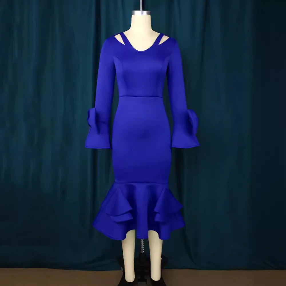 Luxury Dresses for Women V Neck Flare Sleeve Sheath White Blue High Quality Female Birthday Party Dinner Wear Mermaid Dress Robe